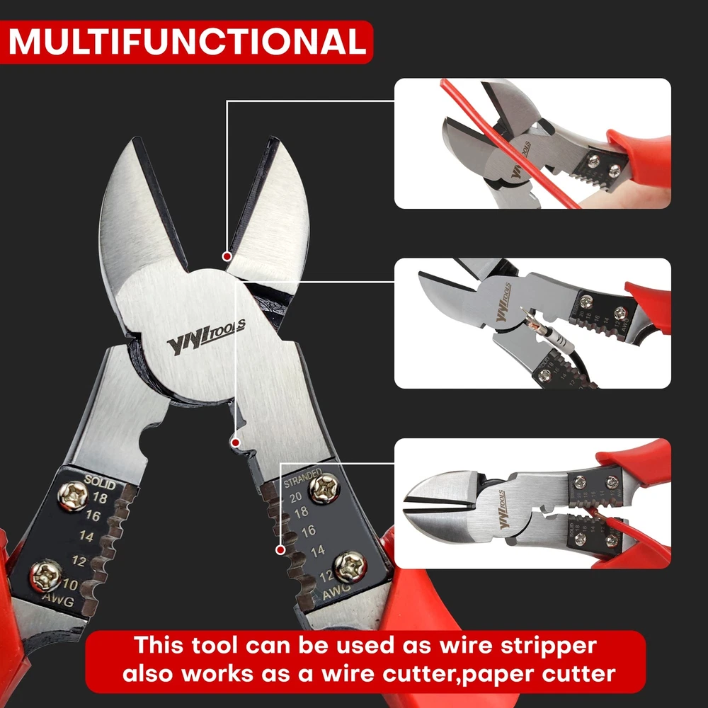 Multifunctional: This tool can be used as wire stripper also works as a wire cutter,paper cutter Multifunctional: This tool can be used as wire stripper also works as a wire cutter,paper cutter PP+TPR materials handle,proTouch grips provide extra comfort and reduces hand fatigue. Durable nickel chromium steel construction,Induction hardened cutting blades for improved strength and durability Compound leverage design provides 50% increase in cutting powe Made with co-molded grips for added comfort
