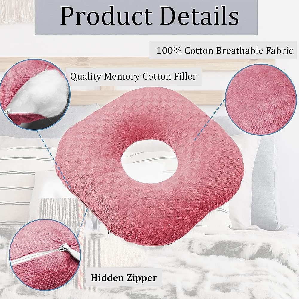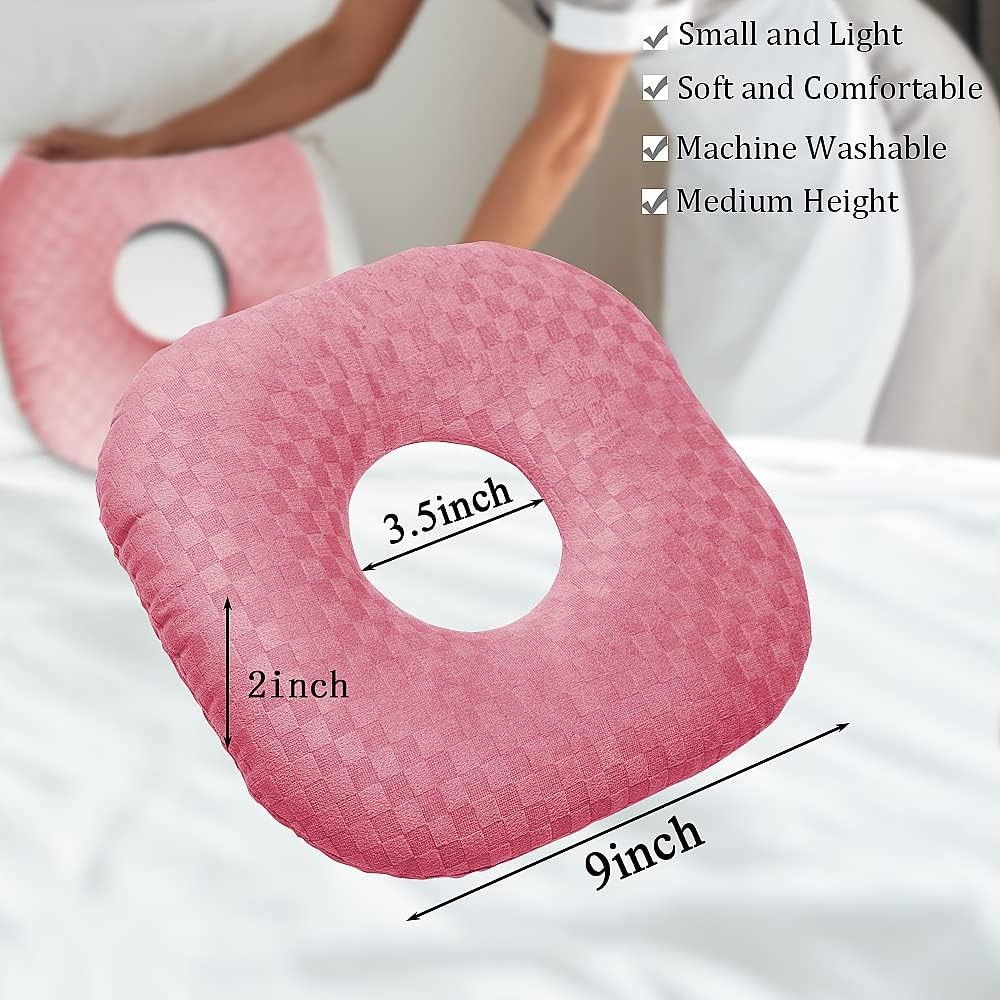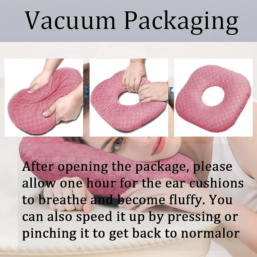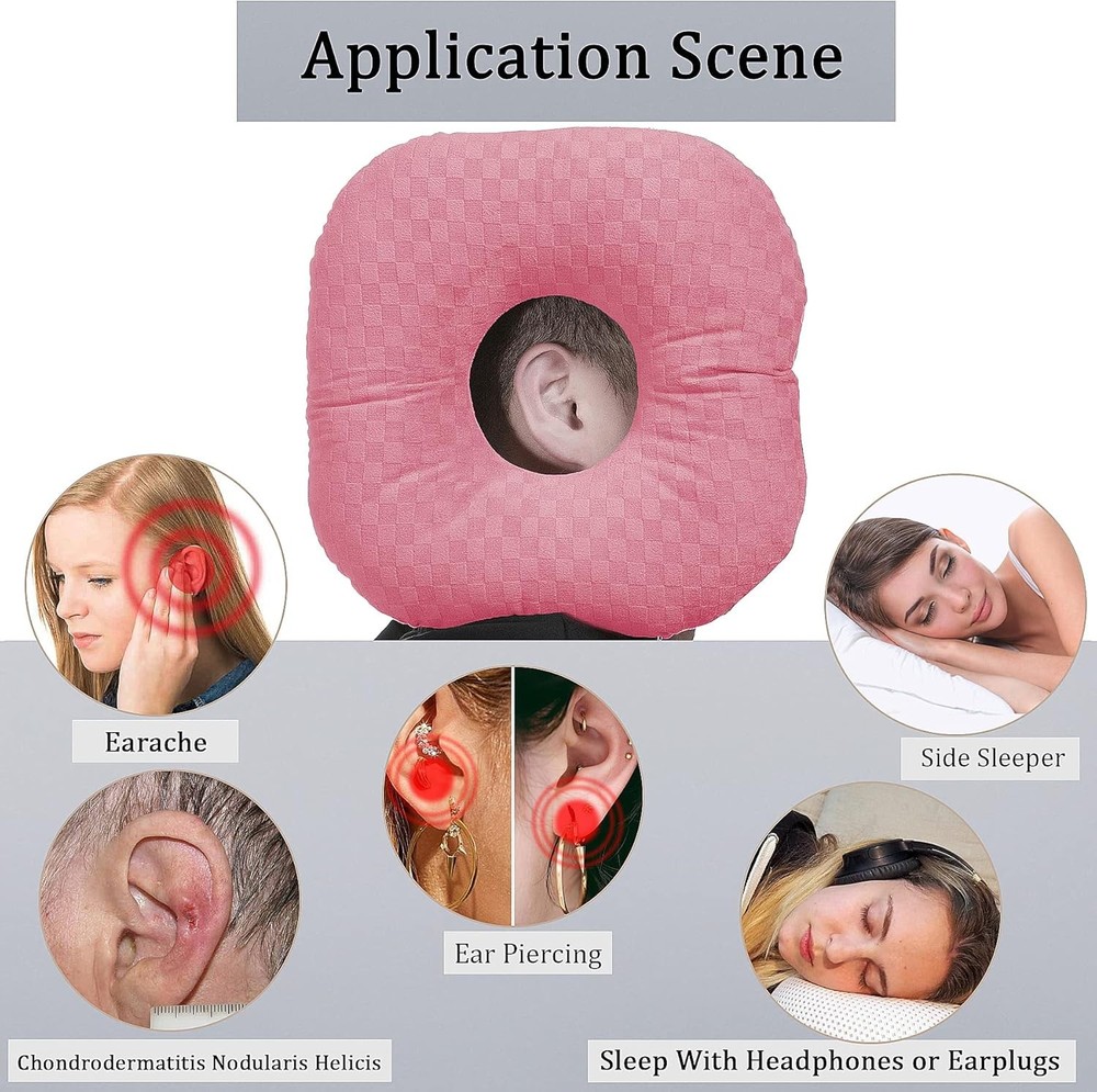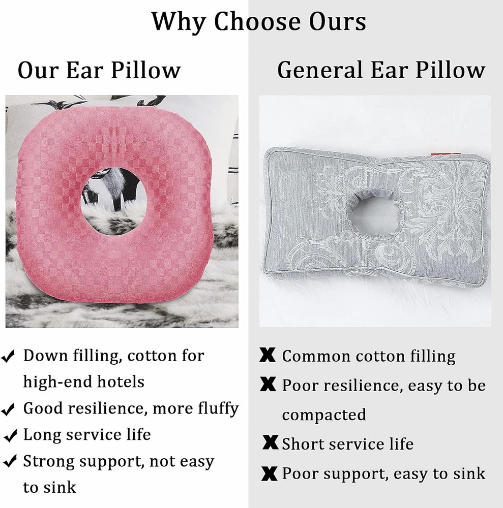 PERFECT SIZE: The piercing pillow measures 9" the hole in the middle is a 3.5" circle. The hole in the middle of the pillow fits your ear perfectly, giving your painful ear a place to rest without the pain of pressure and rubbing. And this height is also suitable, you can use it alone or put it on other pillows, so you can find your comfort zone. SOFT AND COMFORTABLE: Our perforated pillows are made of 100% cotton breathable fabric and down filling, down filling is better than regular cotton, reusable, you can machine wash and dry normally. ADJUSTABLE: The perforated pillow has an invisible zipper. Take some padding out of the pillow when it feels too hard, or add some padding when it feels too soft. EAR PAIN RELIEF: The pillow with a hole is helpful to reduce ear pressure while side sleeping, relieving ear pain, ear inflammation and pressure sores. APPLICABLE PEOPLE: Our pillow is great for anyone with multiple ear piercings, chondrodermatitis nodularis helicis new piercing, earrings/hearing amplifier/noise cancelling earbuds/headphones/earache/pain/tinnitus/vertigo. Great for piercing comfort. Fresh cartilage piercings pillows can eliminate the pain! Suits for those who had ear surgery work great for heals from surgery. Perfect for the piercing addict and a side sleeper. Suits for those who used to fall asleep is with earplugs.