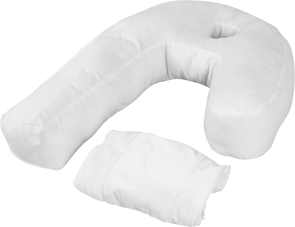 CONTACT US DIRECTLY FOR FREE & PREPAID RETURNS Side Sleeper Pillow with Ear Hole  Ergonomic J-shaped Swan Pillow for Neck Su Side Sleeper Pillow with Ear Hole – Ergonomic J-Shaped Swan Pillow for Neck Support & Spine Alignment – Memory Foam Support for Pressure Relief – Perfect for Side Sleeping – with Velvet Cover Description Item model number AA0259 Variety Body Pillow Pattern Solid Item Firmness Description Soft Number of Pieces 1 Unit Count 1.0 Count Product Dimensions 21.5"L x 14"W Material Velvet Age Range (Description) Adult Model Name SIDE SLEEPER PILLOW Fabric Type Nullify Item Weight 1 pounds Fill Material Cotton Special Feature Breathable Color Velvet Pillowcase Shape Semicircular Use for Neck Recommended Uses For Product Sleeping Product Care Instructions Machine Wash Size 1 Count (Pack of 1) This side sleep pillow for neck improves your sleep posture by gently guiding your neck and spine into the proper position for a better night’s sleep. This is the perfect side cuddle pillow for neck and shoulder pain and it also comes in a giftable package. The u shaped body pillow's curved pillow with long tail to keep your head, neck, and spine in proper alignment all night. Shoulder pillow for sleeping is a pillow with arm hole access. For those who suffer with sleep apnea, this could rank best sleep apnea pillow for side sleepers or face down pillow after eye surgery. Simply place your ear in the ear well of the candy cane shaped pillow, and you will be instantly positioned in the perfect posture for an amazing night's sleep with this ear pillow. The shoulder pillow for shoulder pain side sleeper people that can be used with a memory foam body pillow will find it's that easy! Wake up feeling more rested and refreshed. Our posture U shaped pillow for Side Sleepers is reversible, so whether you're a left side sleeper, a right side sleeper, or both, you'll always be in the right position for this side sleeping pillow and getting great sleep. This could be your best sleeping pillows for side sleepers! The convenient shoulder pain pillow has a removable, washable luxury pillow case. Our pillows for neck pain fits in a suitcase, perfect for , so you can get a good night's sleep anywhere you go with this sleeping pillows for neck and back pain. This pillow with ear hole offers max comfort. Product description REVIEWS The product came very well packaged. I'm very happy. thank you for everything. Seller strongly recommended. This is great! I definitely recommend! Product looks amazing Delivery was fast. Excellent seller, great communication. I advise everyone