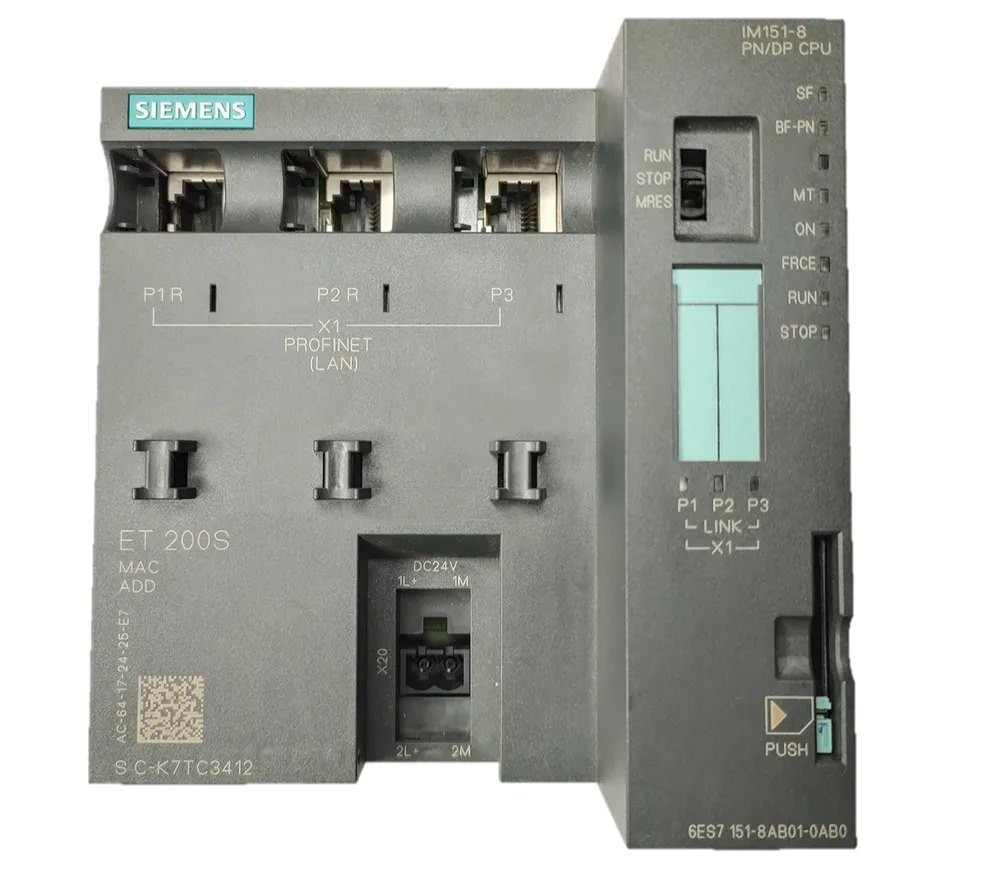 SIMATIC DP, IM151-8 PN/DP CPU for ET200S, 192 KB work memory, int. PROFINET interface (with three RJ45 ports) as IO Controller
