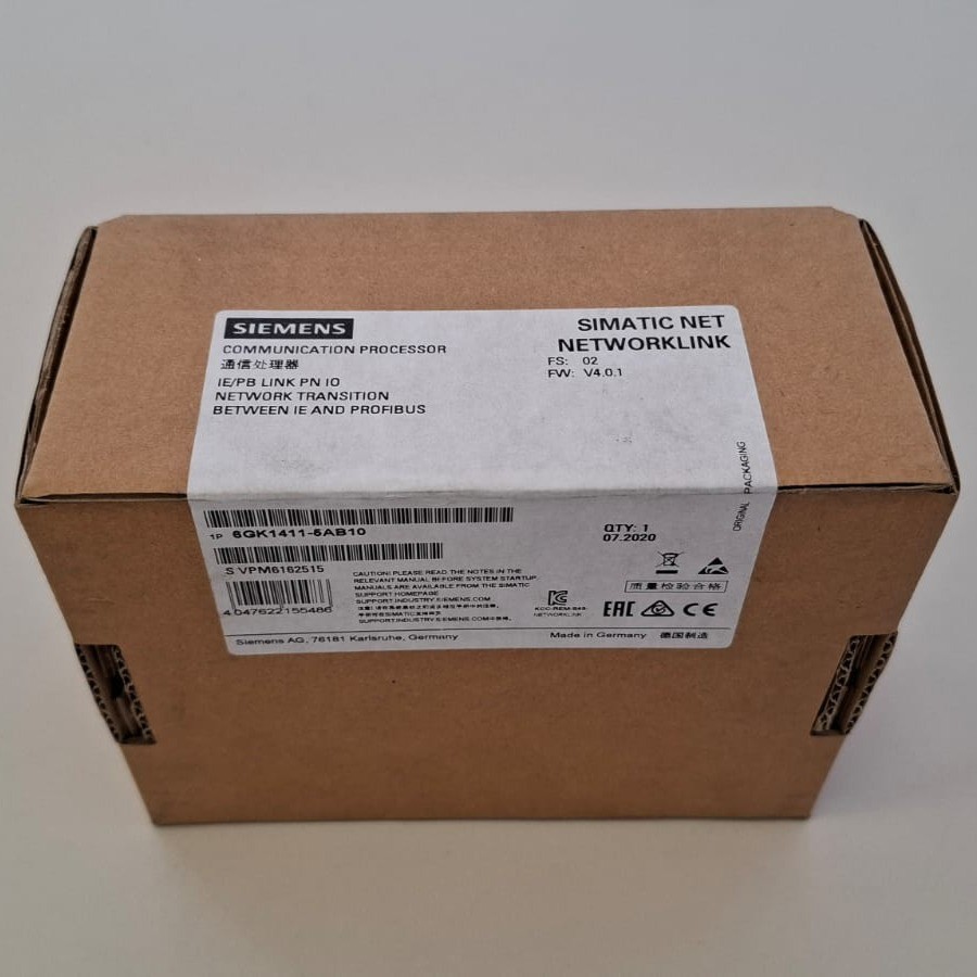 Siemens SIMATIC NET IE/PB LINK PN IO (6GK1411-5AB10) ist ein Kommunikationsprozessor für die Integration industrieller Netzwerke. Er ermöglicht die Verbindung zwischen Industrial Ethernet (IE) und PROFIBUS und sorgt für eine reibungslose Kommunikation und den Datenaustausch in Automatisierungssystemen. Das Gerät dient als Netzwerkgateway und unterstützt Anwendungen, die eine zuverlässige Übertragung und hohe Kompatibilität mit SIMATIC-Lösungen erfordern. Hersteller: Siemens Serie: SIMATIC NET Modell: IE/PB LINK PN IO Bestellnummer: 6GK1411-5AB10 Funktion: Übergang zwischen Industrial Ethernet und PROFIBUS Gerätetyp: Kommunikationsprozessor (Network Link) Firmware-Version: V4.0.1 Produktionsdatum: 07/2020 Herstellungsland: Deutschland
