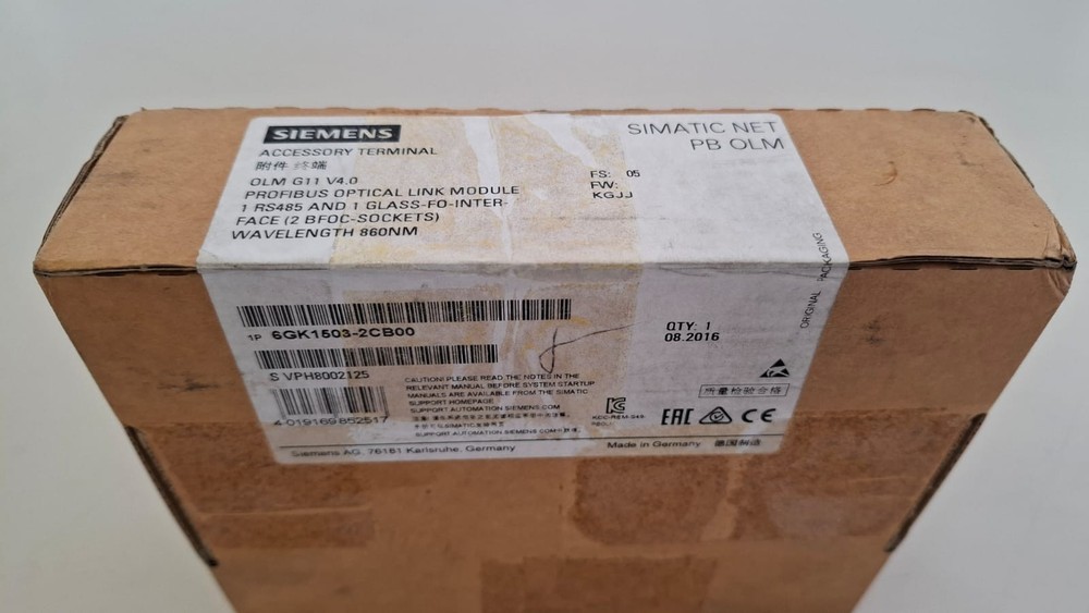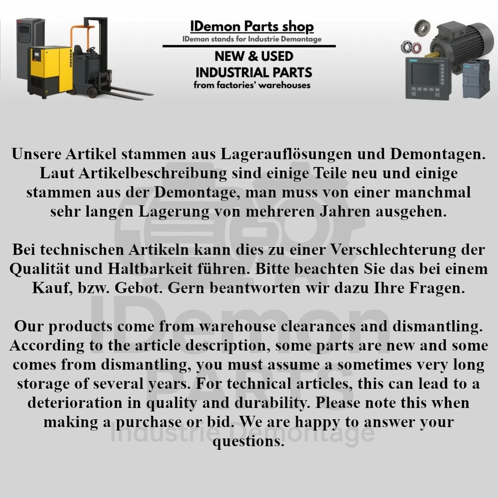 Siemens SIMATIC NET PB OLM G11 V4.0 ist ein PROFIBUS-Optical-Link-Modul, das für die Integration und Erweiterung von industriellen Netzwerken entwickelt wurde. Es wandelt RS485-Signale in Glasfaserübertragung um und ermöglicht dadurch eine zuverlässige und störsichere Kommunikation über große Entfernungen. Ideal für den Einsatz in industriellen Umgebungen mit hohen Anforderungen an Datensicherheit. Technische Daten DE: Hersteller: Siemens Serie: SIMATIC NET PB OLM Modell: OLM G11 V4.0 Funktion: PROFIBUS-Optical-Link-Modul Schnittstellen: 1 x RS485, 1 x Glasfaser-Schnittstelle (2 BFOC-Buchsen) Wellenlänge: 860 nm Bestellnummer: 6GK1503-2CB00 Produktionsjahr: 2016 Hergestellt in Deutschland Hinweis für EU-Geschäftskunden: Unsere eBay-Angebote enthalten standardmäßig deutsche Mehrwertsteuer (19 %). Wenn Sie als Unternehmen mit gültiger USt-IdNr. aus einem anderen EU-Land einkaufen möchten und die Reverse-Charge-Regelung nutzen wollen, kontaktieren Sie uns bitte vor dem Kauf. Wir passen das Angebot dann auf Nettopreis (0 % MwSt.) an und stellen Ihnen eine entsprechende Rechnung aus.