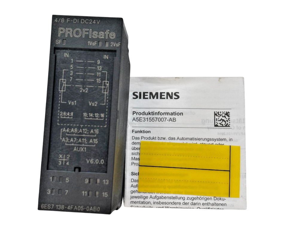 CONDITION / ZUSTAND: EN: Looks like new. No visible signs of use. Original box opened. The item comes from surplus stock of a closed factory, therefore we cannot guarantee that it is brand new. DE: Sieht aus wie neu. Keine sichtbaren Gebrauchsspuren. Originalverpackung geöffnet. Der Artikel stammt aus der Lagerüberbestandsauflösung einer geschlossenen Fabrik, daher kann nicht garantiert werden, dass es sich um Neuware handelt. TECHNICAL DATA / TECHNISCHE DATEN: EN: Manufacturer: Siemens Product line: SIMATIC ET 200S Order number: 6ES7-138-4FA05-0AB0 Module type: Digital Input Module Inputs: 4/8 F-DI Input voltage: 24 V DC Firmware version: V6.0.0 Functional safety: F-module Certifications: CE, EAC, KC Country of manufacture: Germany DE: Hersteller: Siemens Produktlinie: SIMATIC ET 200S Bestellnummer: 6ES7-138-4FA05-0AB0 Modultyp: Digitaleingabemodul Eingänge: 4/8 F-DI Eingangsspannung: 24 V DC Firmware-Version: V6.0.0 Funktionale Sicherheit: F-Modul Zertifizierungen: CE, EAC, KC Herstellungsland: Deutschland Hinweis für EU-Geschäftskunden: Unsere eBay-Angebote enthalten standardmäßig deutsche Mehrwertsteuer (19 %). Wenn Sie als Unternehmen mit gültiger USt-IdNr. aus einem anderen EU-Land einkaufen möchten und die Reverse-Charge-Regelung nutzen wollen, kontaktieren Sie uns bitte vor dem Kauf . Wir passen das Angebot dann auf Nettopreis (0 % MwSt.) an und stellen Ihnen eine entsprechende Rechnung aus. Notice for EU business customers: All our eBay listings include German VAT (19 %) by default. If you are an EU company with a valid VAT ID and wish to purchase under the reverse charge mechanism, please contact us before placing your order . We will then adjust the listing to a net price (0 % VAT) and provide you with the correct invoice.