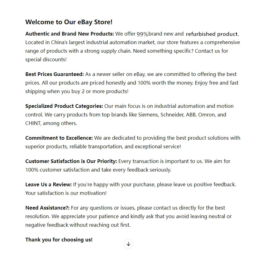 Hi My Friend, This is Price Negotiating Item. This is a negotiatable ebay listing for PLC Processor items. The price displayed on this listing is not the final price. Price is dymatic.As a professional trader, we can offer you the latest prices. Please feel free to contact our customer service to confirm your requirements and acceptable price before placing an order. New or refurbished item are for choosen. Different models and requirements correspond to different prices. We aim to give you best price & best service to meet your requirments. Please negotiate final price with our customer service. We will response at first time with no more than 12 hours. Please dont place order directly without contact us to confirm final price. Usually the final price will higher than page show. Please pay price difference. Otherwise,we can not send your order.Thank you! BRAND NEW PARTS OR REFURBISHED PARTS 100% CUSTOMER SATISFACTION 90 DAYS MONEY BACK WARRANTY! HIGH QUALITY meets your HIGH STANDARDS MORE QUANTITY MORE DISCOUNTS------>>> JUST CONTACT US 1. No any handle fees. 2. Items will be shipped in 3-5 business days on payment received. 3. We ship to eBay's address only. Please make sure your address in eBay is matched with your shipping address before payment. 4. We provide Economy Int'l Shipping and Express shipping services. 5. We provide free shipping for some items and there is no Tracking NO available. Economy or Standard Int'l Shipping: We ship to USA,Europe by SpeedPAK and other countries by International parcel with registed T/N. Estimated Shipping time Country Estimated Delivery time United States About 7-12 business time Asia About 10 business time Most Occident countries About 12 business time Russia About 7-18 business time Canada About 15 business time Australia About 20 business time Africa & European remote About 20 business time South America About 22-30 business time Express international shipping: We provide express shipping service if you need the parts urgently. We will ship by DHL , Fedex or EMS and charge $ 30 as expess shipping freights. And the delivery time is about 3 to 5 working days according to your locations. · Returns Policy We provide 90 days warranty, buying with confidence! If you are not satisfied with your parts, you can return it back within 60 days for replacement or money back. Any question, please contact us and we will response in 24 hours. · About Us Benton Chips is a B2B & B2C online store dedicated to support companies and people engaged in the Electronic Components Industry. Benton Chips enables buyers to source electronic components around the world. Benton Chips holds more than 200,000 lines in stock. We don't list all lines on eBay. Please send us RFQ if you look for any electronic component. Benton Chips is not only an electronic component retailer, but also an wholesale company. If you look for large quantity, please contact us to get better offer. Benton Chips wants to earn your trust through reliable and competive services. ? PAYMENT We accept Payoneer PayPal payment All major credit cards are accepted through secure payment processor PayPal.(* If you use e-check on PayPal, delivery may take longer, as we will hold your order until your e-check clear) Payment must be received once after you placed your order of buy it now. Please make sure your PayPal and eBay address is correct. If not, please correct it before payment. Thank you. Custom duties, taxes, or charges are not included in the cost you pay to us. Please check with your country's customs office to determine what these additional costs will be prior to bidding/ buying. ? SHIPPING We Ship to Worldwide, except China (Hong Kong,Taiwan,Macao), and we do not ship to APO/FPO. Orders processed within 24-48 hours of payment verification. Before buying, Please make sure your PayPal and eBay address is correct. If not, please correct it before payment.if you want me send the item to another address,please send me a message. If you have not received your shipment within 40 days from payment, please contact us. We will track the shipment and get back to you as soon as possible with a reply. Our goal is customer satisfaction! Due to stock status and time differences, we will choose to ship your item from our first available warehouse for fast delivery. Many of our products have overseas warehouses, including Australian warehouses, American warehouses and ? RETURNS If you are not satisfied when you receive your item, please return it within 30 days for a replacement or money back. Please contact me before you return it. Defective items Must Be reported and returned to us within the warranty period (and in the original packaging, if possible). You must tell us what the defect is and give us your eBay ID. Return shipping is to be paid by the Buyer. We act as a responsible seller; we are willing to actively undertake the following responsibilities: a. The item is lost during transit; b. The item is damaged during transport; c. Due to our work errors, transporting the wrong items to the buyer; d. The item in the actual use of the process of quality problems. ? FEEDBACK We will leave POSITIVE FEEDBACK after receiving the payment. Please contact us if you are not satisfied with the item after receiving it. All email will be answered within One working day. If you do not receive our reply, please kindly re-sent your email and we will reply to you as soon as possible. We maintain high standards of excellence and strive for 100% customer satisfaction! Feedback is very important to us. We request that you contact us immediately. Before you give us neutral or negative Feedback, so that we can satisfactorily address your concerns. Good communication can fix all problems, we always believe that as long as you are willing to communicate with us, we will give you a satisfactory answer. ? ABOUT US Welcome to my shop,We offer an extensive range of products selected by our professionals.superiority in details and qua