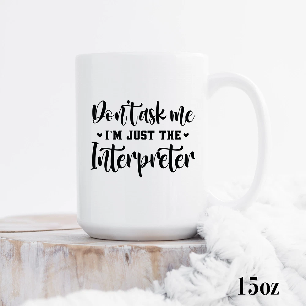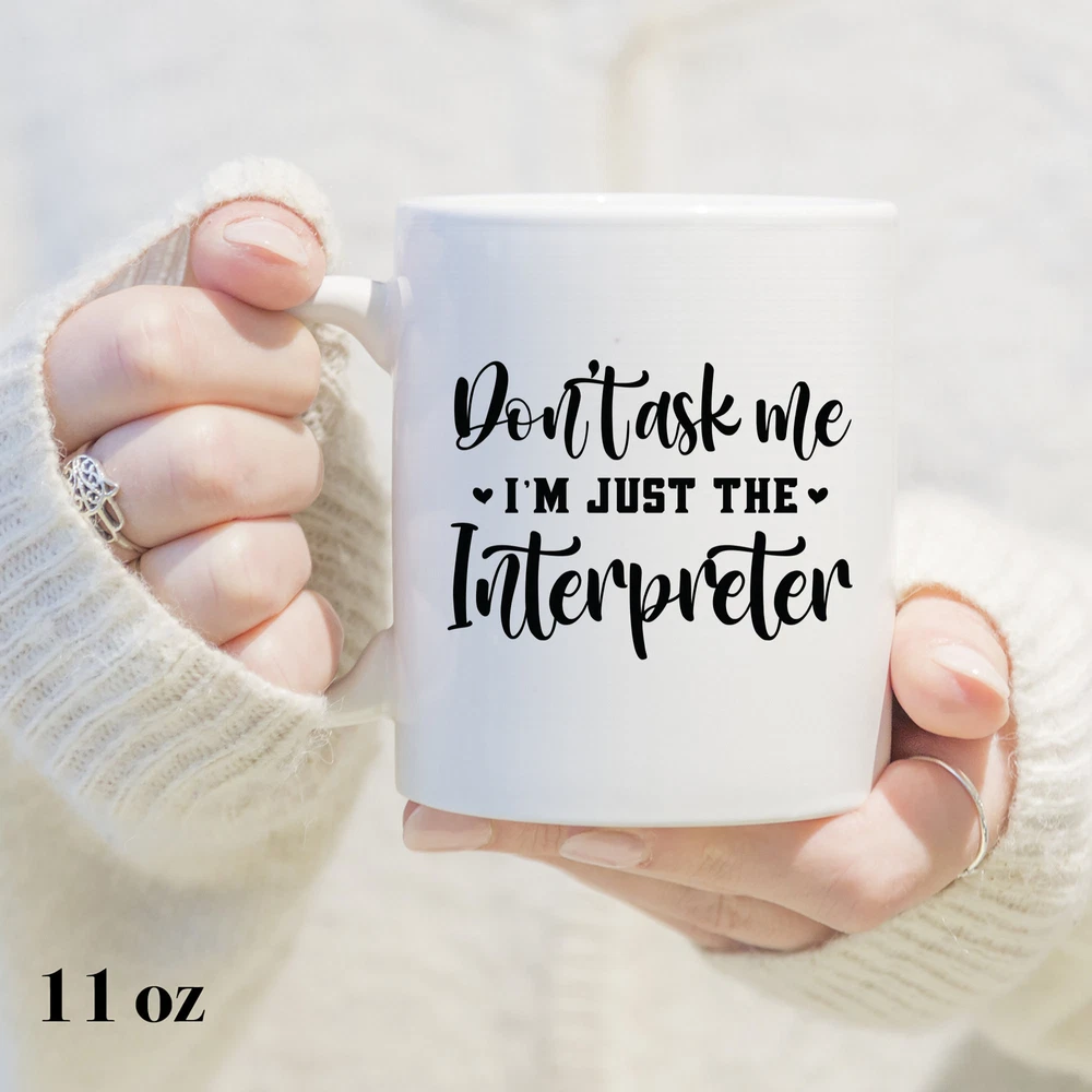 Sign Language Interpreter Mug Asl Interpreter Mug Sign Language Gift Asl Teacher Product Details.. This high quality 11oz. ceramic white mug has a premium hard coat that provides crisp and vibrant color reproduction sure to last for years. Perfect for all hot & cold beverages. The highest quality printing possible is used. It will never fade no matter how many times you wash it. Material: 100% Ceramic. Print both sides. Dishwasher and Microwave Safe. High Gloss + Premium White Finish. Printed in the U.S.A. Personalized & Custom. We support personalized and custom mug to add custom, when placing an order, you can add notes to the "order note" in shipping address section. Also you can contact us directly via message. Shipping Info. Ready to ship in 1 to 2 business days, All products are made-to-order and proudly printed in the United States. Shipped by USPS and DHL, You will receive your order in 5-7 days. Replace & Refund. All products are defective during shipping broken, chipped will be replaced free of charge. You are not satisfied with the product, we will refund 100% money to you. If any other issues arise, please do not hesitate to message, we would be more than happy to assist you.