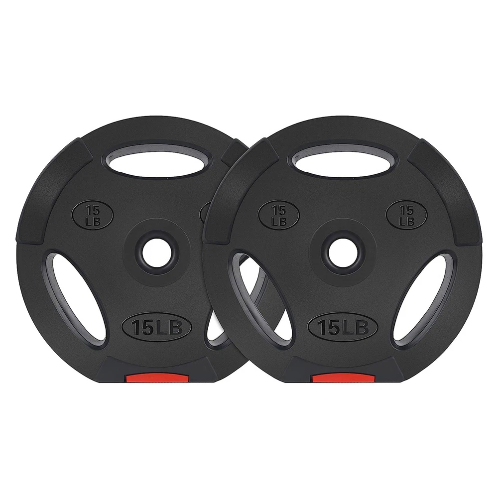 Signature Fitness Standard 15 Pound Coded Olympic Weight Plate, Black (Set of 2)