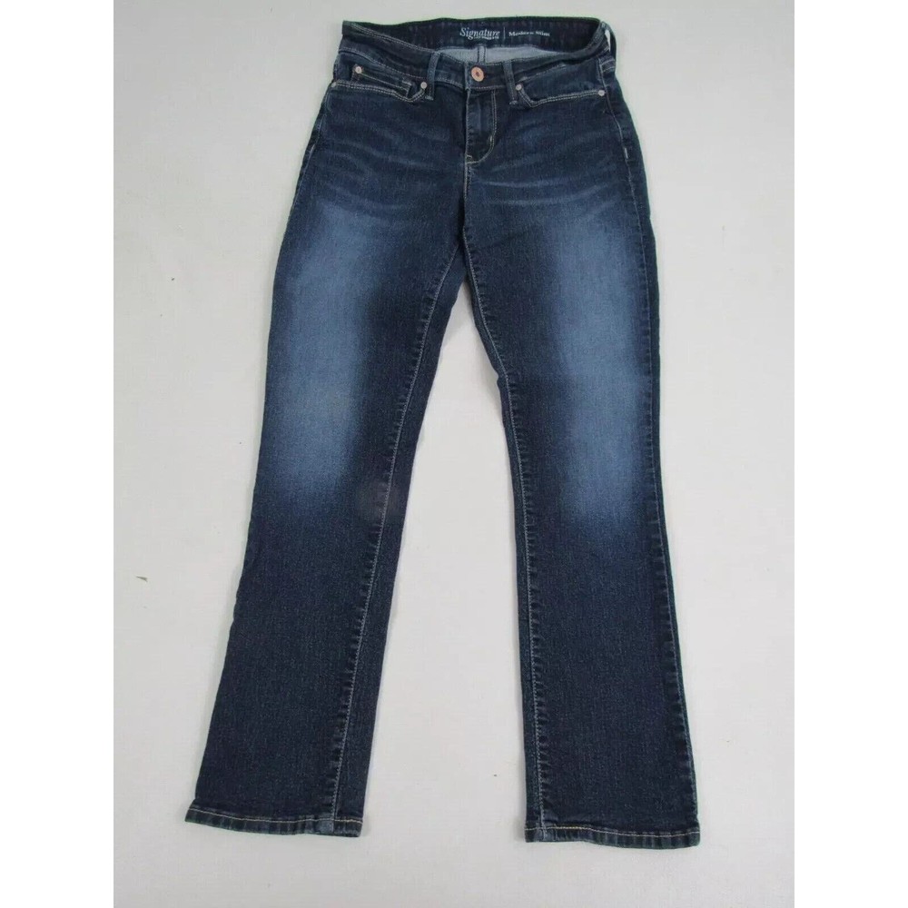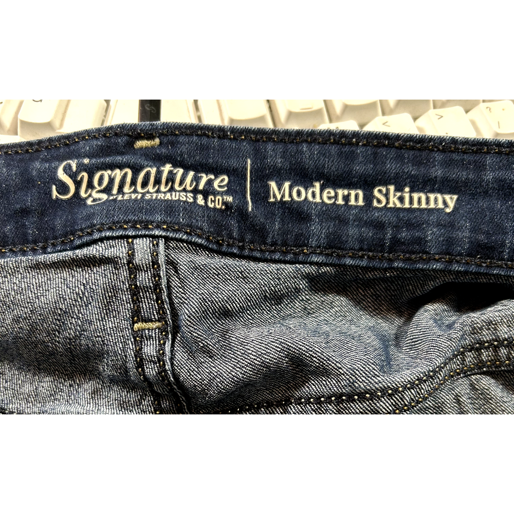 Signature by Levi's Modern Skinny Women's Size 26 Blue Denim Jeans medium wash metal zipper and button says 38 x 32 my measurements 48 x 29" inseam plus stretch mid rise 83% cotton 15% polyester 2% elastane You Are Enough 2672. 2 lbs $20