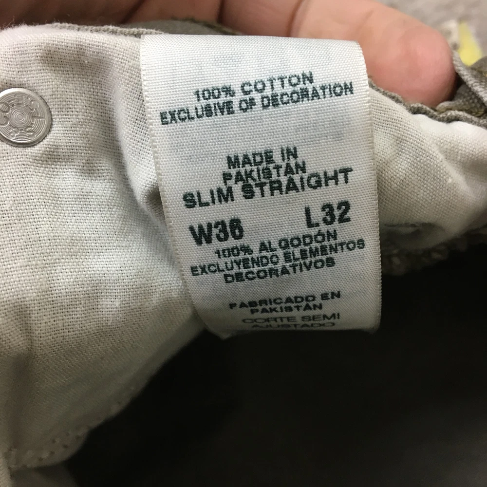 Features: Breathable, Comfort, Pockets Material: Cotton Style: Chino Brand: Levi's Leg Style: Straight Inseam: 32 in Front Type: Flat Front Color: Green Rise: Mid (10-12 in) Country/Region of Manufacture: Pakistan Type: Pants Pocket Type: 5-Pocket Design Department: Men Closure: Button, Zip Seller Notes: “Very Good Used Condition. Please, See Pictures for Full Condition and Measurements.” Pattern: Solid Fabric Type: Denim Waist Size: 36 in Accents: Button, Logo Occasion: Casual, Travel, Workwear Size: 36 Size Type: Regular Season: Fall, Spring, Summer, Winter Garment Care: Machine Washable Theme: Logo Fit: Slim
