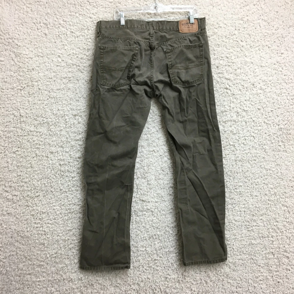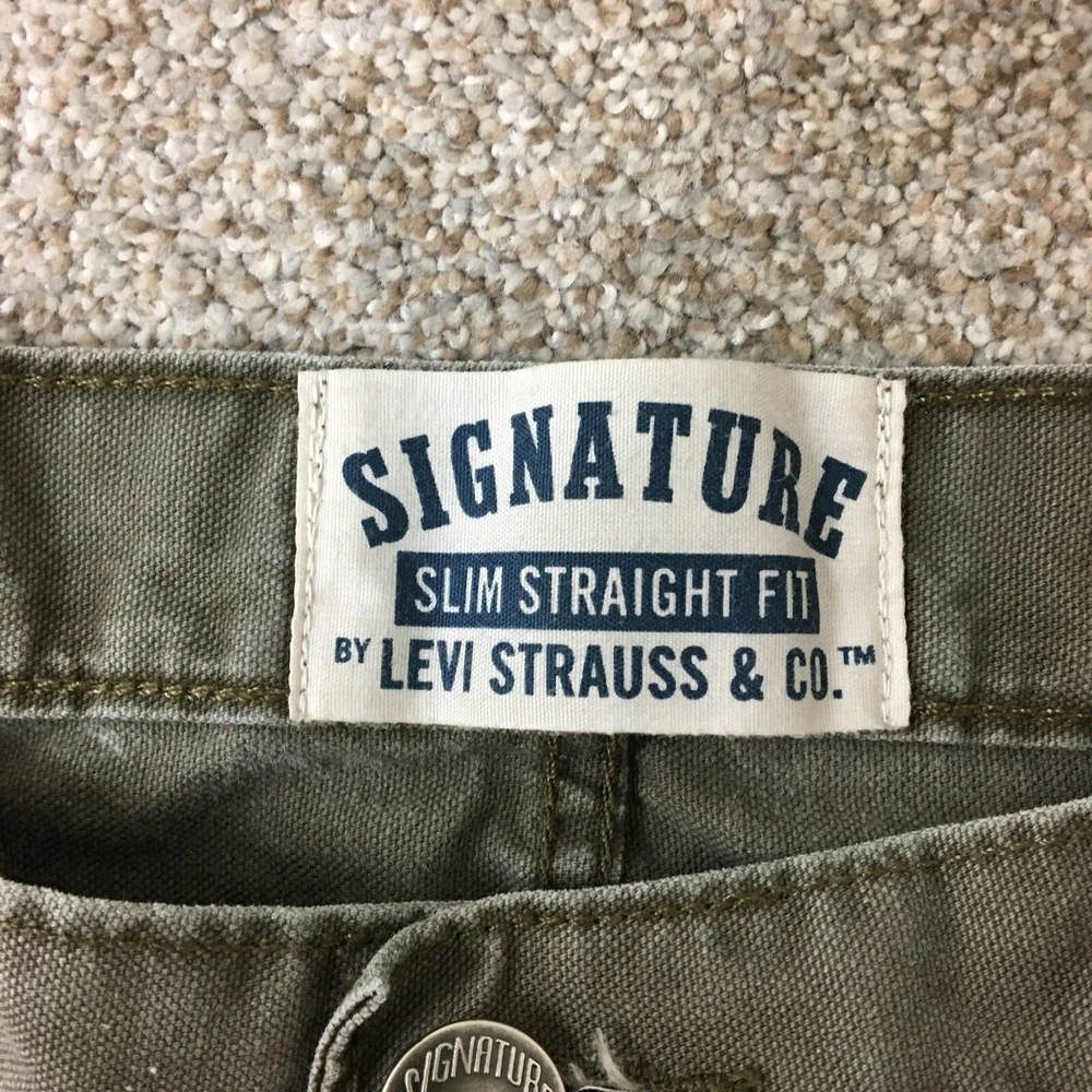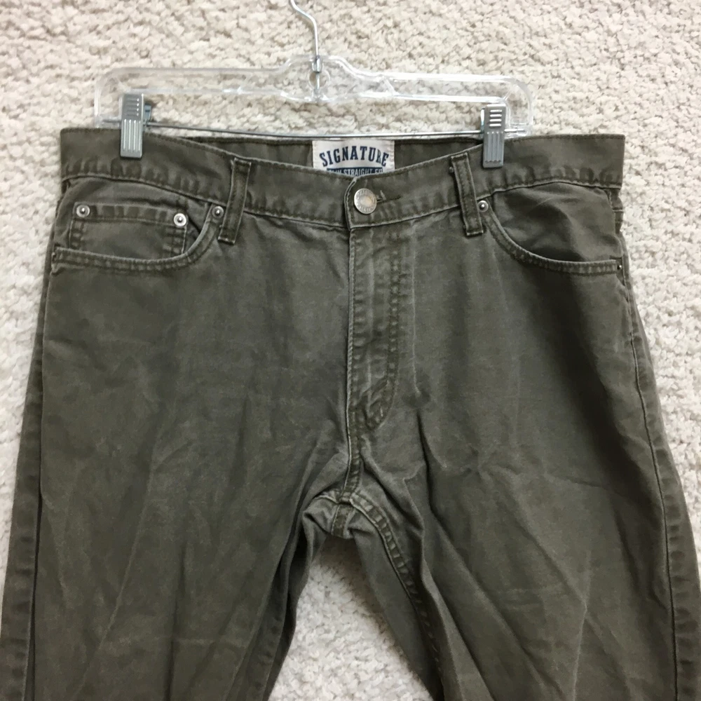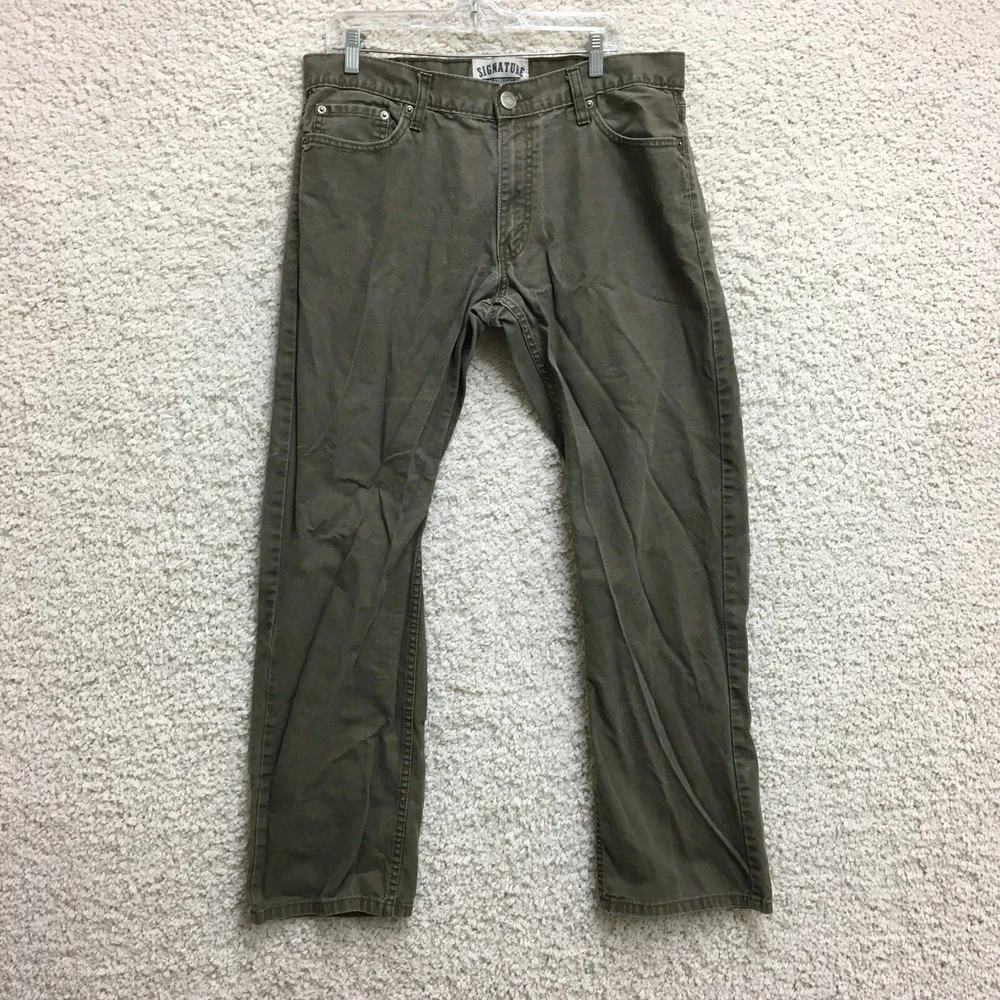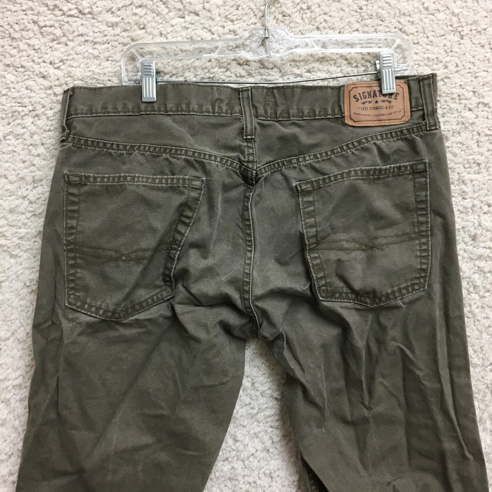 Signature Levis Strauss & Co Pants 36x32 Mens Green Slim Fit Straight 5 Pockets