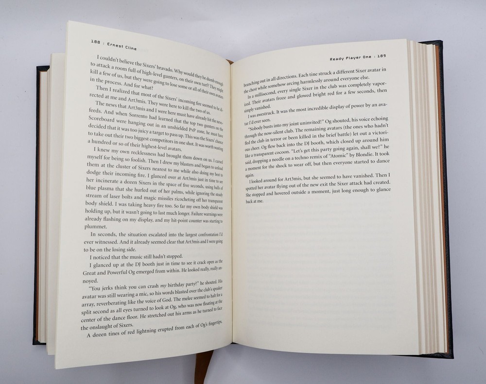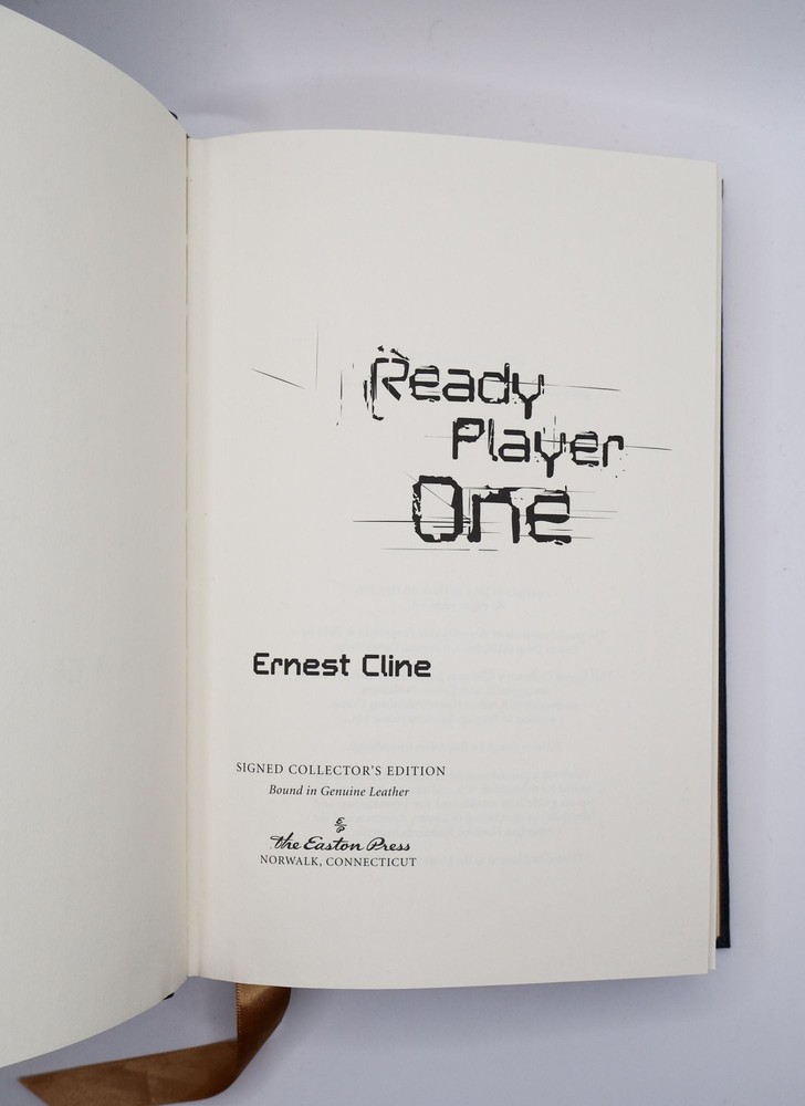 READY PLAYER ONE [Signed] Author: Cline, Ernest Title: READY PLAYER ONE [Signed] Publication: Norwalk, CT: Easton Press, 2016 Edition: Signed Collector's Edition Description: Octavo, 374 pages. In Very Good condition. Bound in full dark blue fine genuine leather, gilt lettering and decoration to paneled spine and front cover; gilt text block; silk endpapers; silk ribbon bookmark. Mild general shelf wear to boards, including light scratching to text block. Signed flat on limitation page by Ernest Cline. Shelved in Case 8 1/4. Seller ID: 1391755 Subject: Dupont Circle, Fine Bindings & Private Press, Literature Welcome to the eBay store of Second Story Books! DC's Oldest Rare and Used Bookstore, Second Story Books operates two open shops in the Washington D.C. metropolitan area. We have an extensive internet presence and provide accredited appraisals member ASA. This listing was created by Bibliopolis.