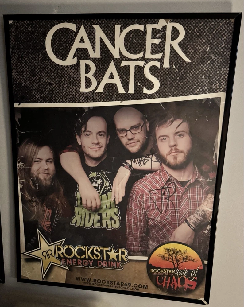 Signed Cancer Bats Poster from Taste of Chaos Tour 2008. Poster is in rough condition as it is from 2008. It comes framed and 3/4 members signed it. Feel free to submit an offer. Fast and free shipping. Willing to ship overseas for a higher price. Please message before you buy if you’re overseas.