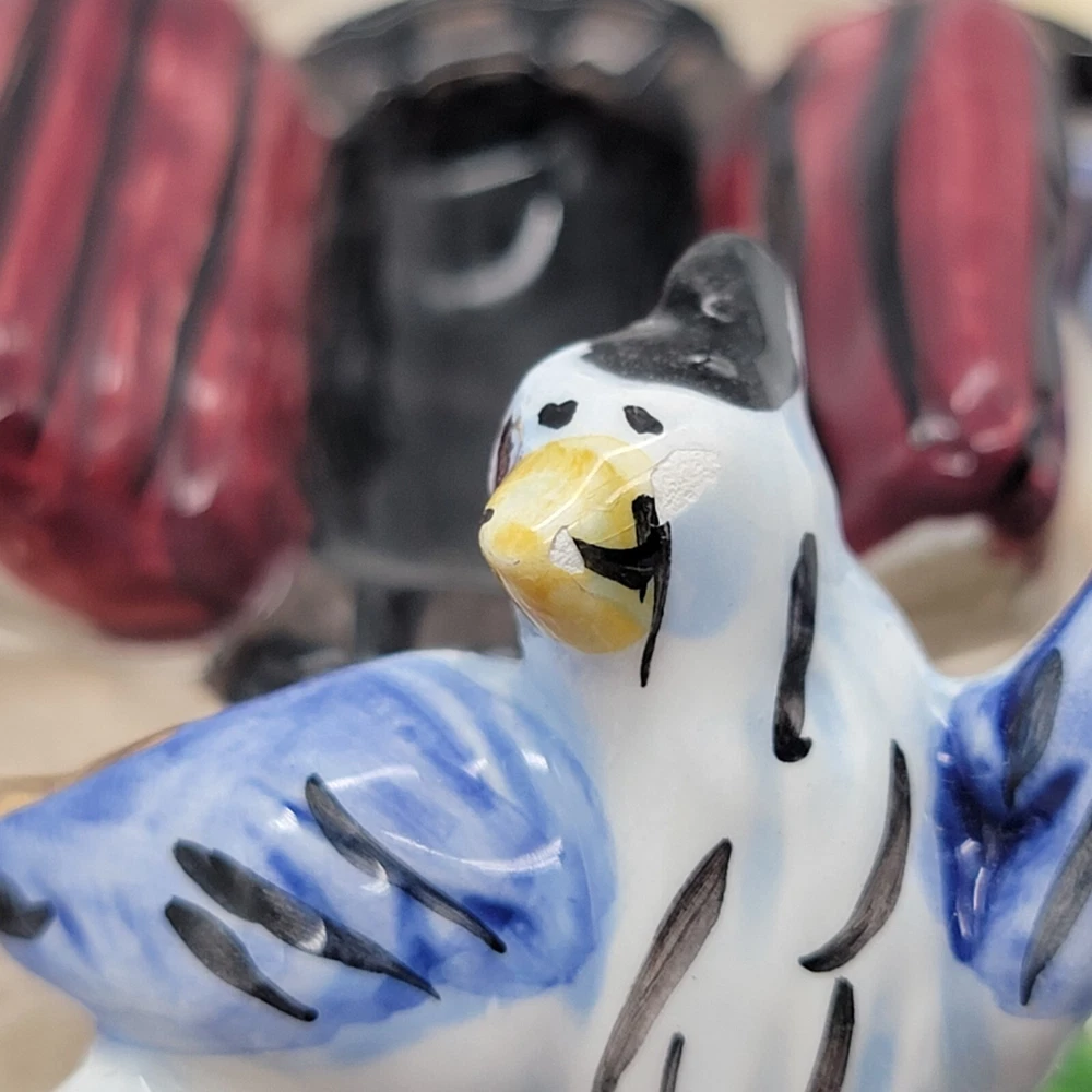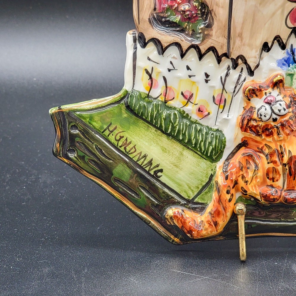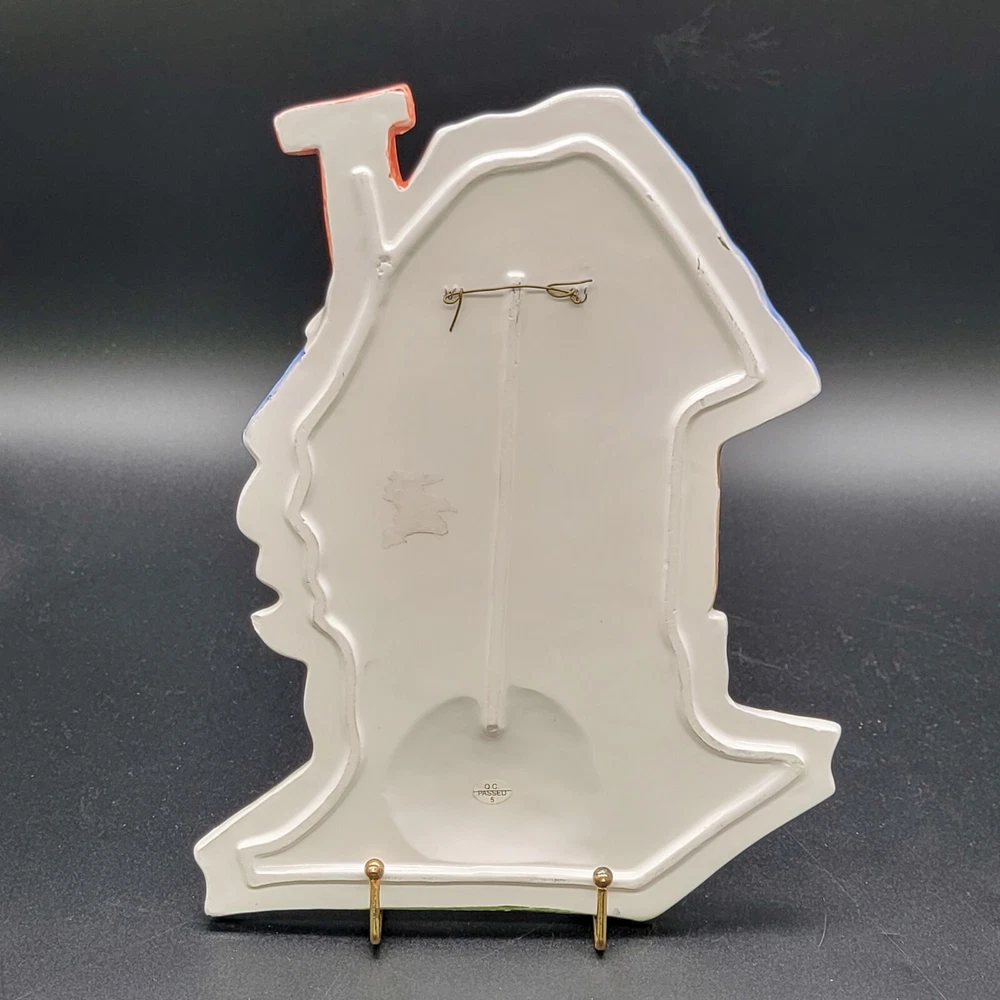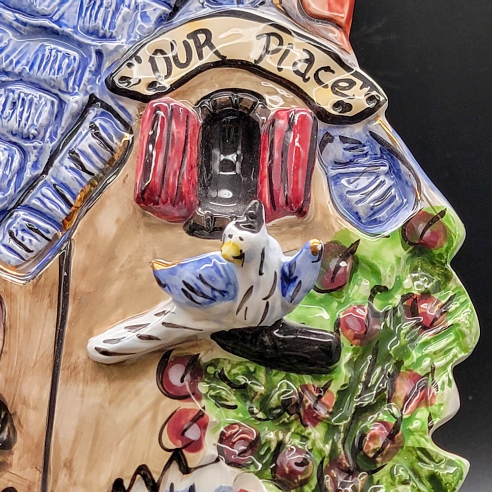 Add a touch of whimsy to your home with this charming 3D ceramic wall plaque featuring a playful cat and bird design. Perfect for adding character to any space, this piece makes a delightful gift for new home owners and animal lovers. (stand not included) • Ceramic material • Whimsical design • Cat and bird motif • Ideal for home decor • Perfect gift for new home owners and animal lovers Good used condition with some scuffs on the bird and edge of the roof. One minor chip on the back that isn't visible from the front. Please see photos for details.