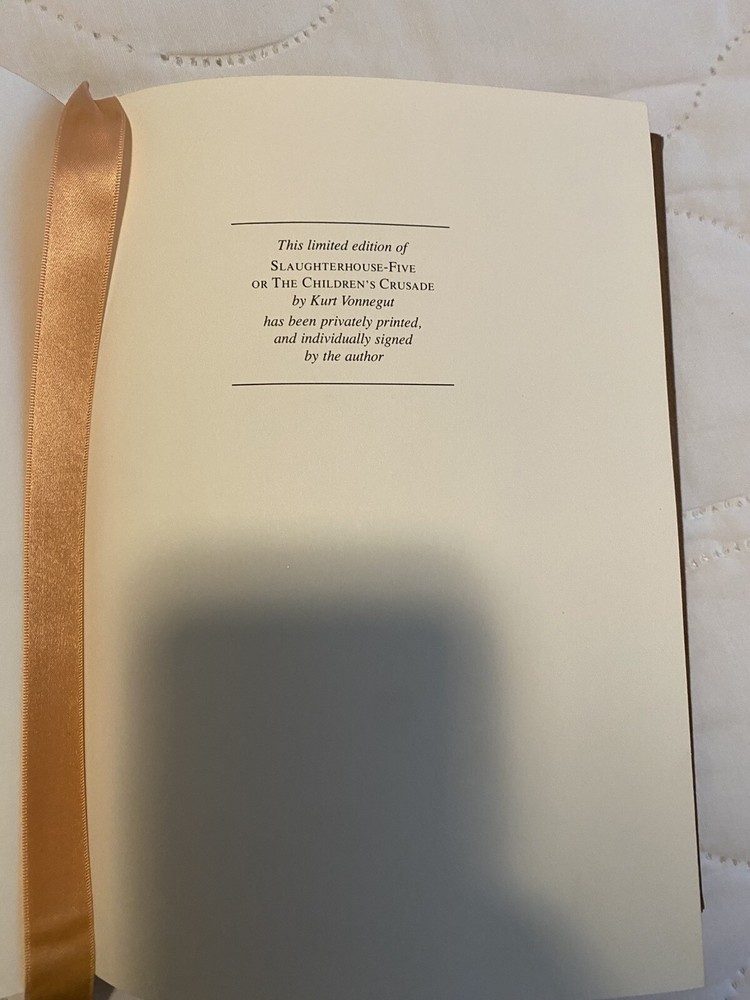 What an exciting opportunity for fans of Kurt Vonnegut! Open to offers! This is a signed leather hardcover edition of "Slaughterhouse Five" by Kurt Vonnegut, published by the Franklin Library in 1978. The book falls under the category of Antiquarian & Collectible and is a valuable piece for literature enthusiasts, especially collectors of Kurt Vonnegut's works.