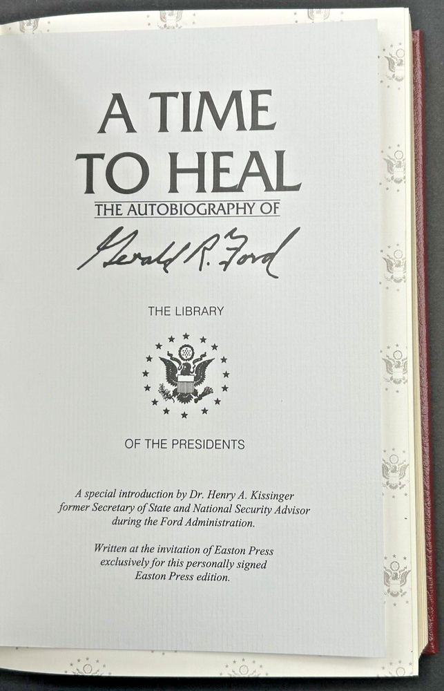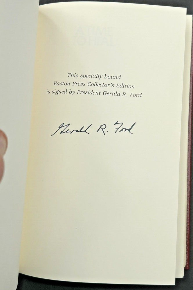 A Time To Heal The Autobiography Of Gerald R. Ford. Deluxe Easton Press leather edition signed by Gerald R. Ford. 454 pages. Note: This book will be properly packed.