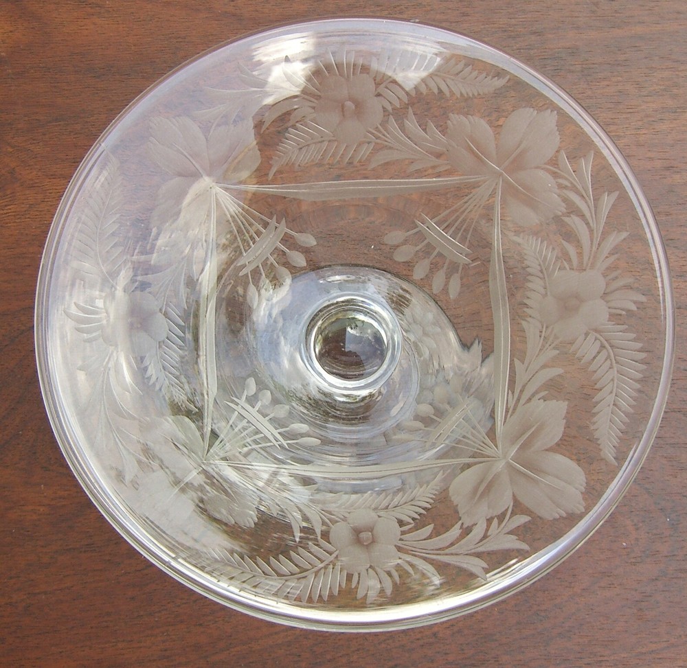 Signed Libbey Engraved Glass Footed Compote or Candy Dish Engraved both within bowl and on base with Floral, Drapery & Foliage design. Signed on underside. (hard to see in pics but it's there) Stands approximately 4" tall and measures 6 1/8" in diameter. Base diameter is 3 1/8". Excellent Estate condition. No defects found. See other items JUST THE FACTS, MA'AM NOTES I try hard to have all silver hand polished before shipping. Most will have been polished before the photos were taken. Sometimes I miss. I do not polish other metals. All books may have an erased or penciled price on an early page. SHIPPING DISCOUNTS Always happy to combine multiple purchases if physically and safely possible. SHIPPING --CONTINENTAL UNITED STATES eBay's shipping and fees policies have required the addition of a Shipping & Handling fee -- minimum $1.00. The S&H fees will include Tracking on all packages, subject to USPS rules. For all purchases $49.99 and over, all James Avery, and all breakables, the S&H fee will also include USPS or eBay Sponsored Insurance fees for the 'Estimated Closing Price'. Current Priority Mail rules give automatic, free insurance for some Priority Mail packages. If your package qualifies I will refund any S&H fees I charged for insurance. Because of "Estimated Closing Price" and the all too frequent 'wild hair' that is eBay -- eBay's shipping calculator and actual shipping and handling costs ofttimes vary. I send out invoices thru the eBay system ASAP (usually within 24 hours) and will correct shipping charges on those invoices. If you wish to avoid a potential slight overcharge, please, wait for my invoice. I cannot be responsible for uninsured items once they are delivered to the Post Office. Items will generally ship within one day, but at most, two working days of cleared payment (i.e. a payment received on Thursday may not ship until Monday). I will email if there is some reason for delay. I do send email confirmations of shipment. SHIPPING AND DETAILS -- OVERSEAS I do not ship anywhere in Africa. Assume that I will not ship to any country in political turmoil. You can see the list in the Shipping Details section. Buyers outside the USA must have: » at least 20 feedback ratings with 100% positive for a period that exceeds 3 months. PayPal required for overseas transactions. A minimum $2.00 handling fee is charged on overseas transactions to cover additional paperwork and packaging costs. This fee will be assessed only once in the case of multiple purchases. Overseas Priority and Express Mail have an inherent insurance based on weight and additional insurance can be purchased . This is also true for the larger Flat Rate boxes. First Class Mail International and Priority Mail Small Box Flat Rate do not include insurance and NO additional insurance can be purchased . Responsibility for an uninsured package will transfer to the buyer at the time I deliver the package to the Post Office. Customs declarations will be the price you paid. Items will ship within two working days of cleared payment (i.e. a payment received on Thursday may not ship until Monday). PAYMENT DETAILS An eBay system invoice will be sent within 24 hours of the close of sale. Payment is expected within 5 days. Write me if there is a problem. Cash or business checks are accepted for local pickup items. Texas residents must present a valid resale number or pay 8.25% sales tax. Again, just drop me an email and I'll adjust the invoice. RETURNS & GUARANTEES All items guaranteed to be as represented. However, I am an antique dealer who deals in old, used items. Unless I call it NEW it isn't, and will probably show signs of age or wear. I will describe anything that I consider to be more than normal wear. Returns must be preauthorized (send me an email or call), otherwise, no refunds will be made. Returns must be shipped within 3 days of receipt of authorization with item in original condition. Insurance required if the original package was insured. Tracking required on all returns. Any refund issued will be for full purchase price only . No shipping charges refunded. FEEDBACK I leave feedback after successful completion of the sale. I determine that the sale has been successfully completed when I receive your feedback. AND FINALLY Seller reserves the right to cancel sale and relist item if: 1) payment has not been received within 5 days of receipt of invoice, or 2) overseas buyer is from a country on my exclusion list or excluded above. Thanks for looking and good luck.