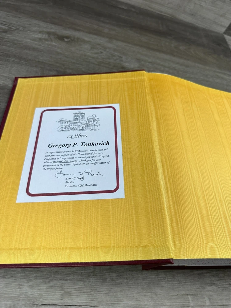 Signed USC Fight On! by Steve Bisaheff and USC Associates Webster Dictionary Product Details: Condition: Used in Very Good Condition ( See Pictures for Reference and Size) Stored in a Non Smoking Home Shipping: I ship daily Monday thru Friday so expect a quick delivery Ships from California, USA Fast Shipping "All items pictured are included. Please take another look at pictures to view what you are purchasing." Thank you for checking out our listing. Please visit my eBay store to find harder to find, and unique items. To View More Items from our Store, Click our Direct Link to our eBay Store Below: The West Coast Reseller Ebay Store