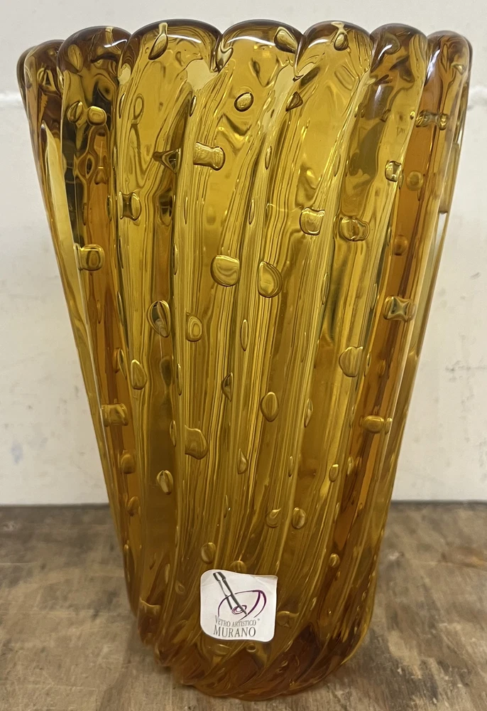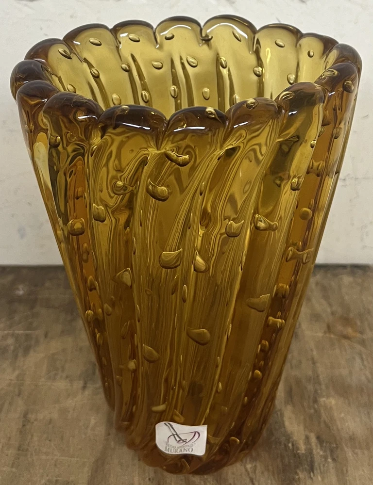 Signed Vetro Artistico - Vintage Brown Murano Glass Vase - 8.75" Vase is in good condition, with no cracks or chips. General wear throughout. Ships as shown.