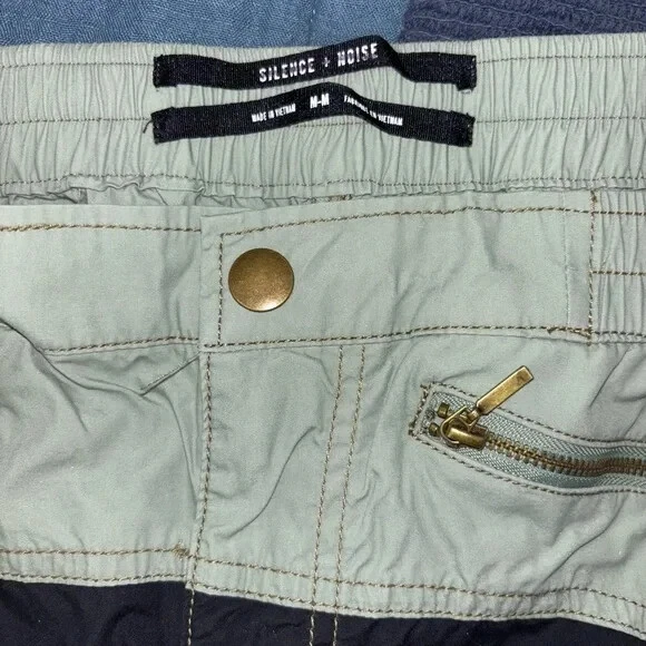 Accents: Zipper Leg Style: Tapered Waist Size: 30 in Model: Lee Color block Motto Pant Inseam: 32 in Department: Women Garment Care: Machine Washable Theme: City, London, Metal, Music Season: Fall, Spring, Winter Vintage: No Fabric Type: Canvas Closure: Pull On, Snap Personalize: No Rise: Low (6.5-8.5 in) Features: Breathable, Comfort, Elastic Waist, Lightweight, Pockets Style: Cargo Pattern: colorblock Material: Cotton Front Type: Pleated Color: Multicolor Occasion: Casual, Party/Cocktail, Travel Size Type: Regular Handmade: No Fit: Relaxed Type: Pants Size: M Brand: Silence + Noise