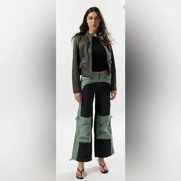 Baggy Silence + Noise pants with moto detailing. Designed with a drapey fit and a low-rise that pairs with a loose wide-leg + cinchable hems. Complete with colorblock paneling and adjustable drawstrings throughout. Features - Colorblock moto pants from Silence + Noise - Easy fit - Low-rise with a wide-leg - Zip fly + zipped pockets throughout - UO exclusive Content + Care - 100% Cotton - Machine wash - Imported Size + Fit - Model in Green Multi is 5'8" and wearing size Medium - Measurements taken from size Medium - Waist: 31" - Rise: 10.75" - Inseam: 32" - Leg opening: 11.5"