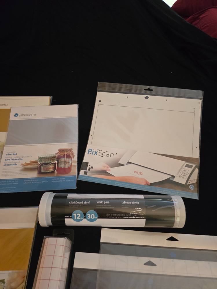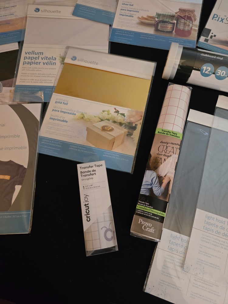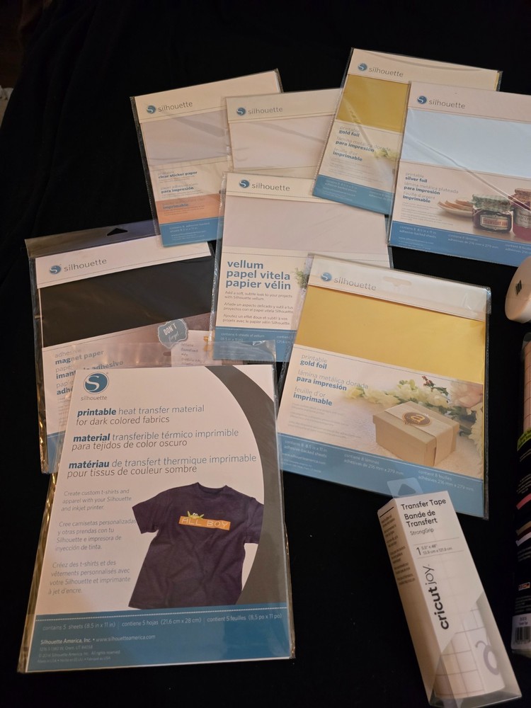 This lot includes an assortment of new packaged items for use with Silhouette cutting machine. Also includes cricut transfer paper in two sizes. Smoke free home