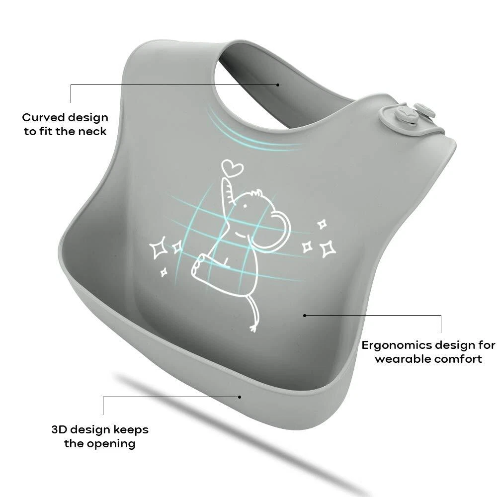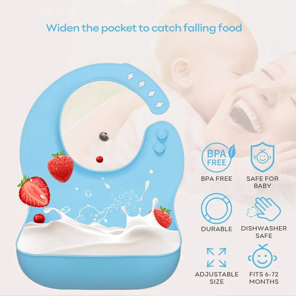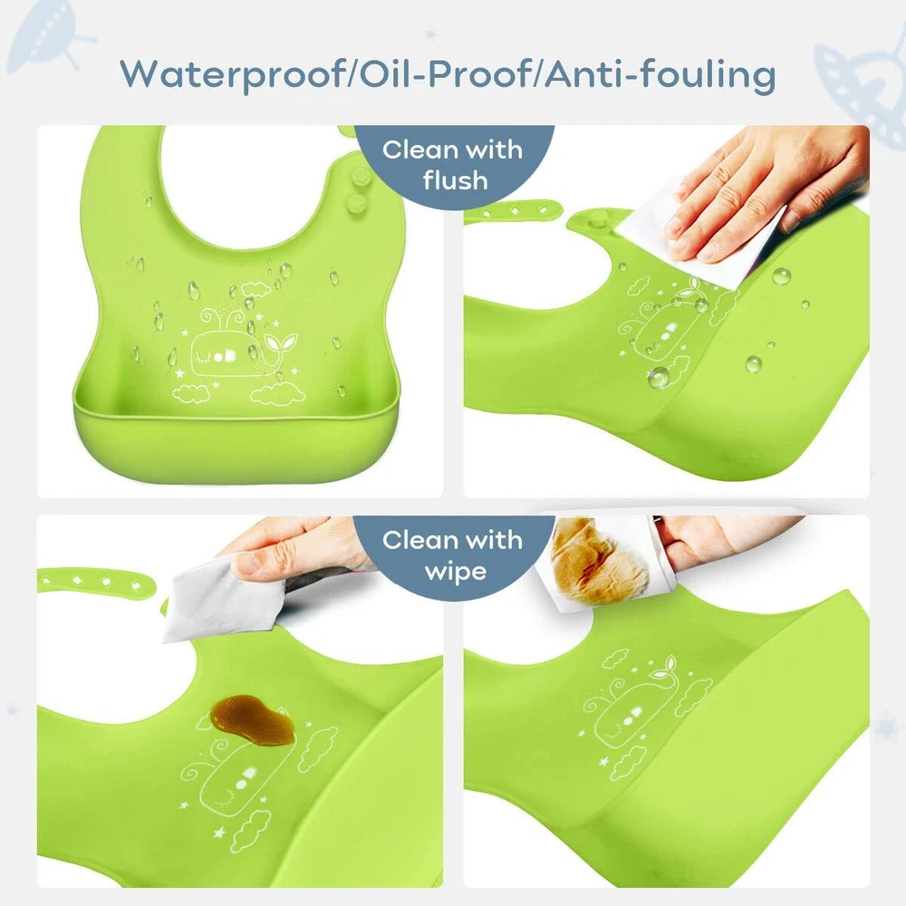 Yoofoss 3pcs Silicone Bibs accompanies the baby to grow up, Enjoy the fun of self-feeding every time. High-quality materials Using first-grade grade silicone, BPA and phthalate free, No odor, hypoallergenic. The mother can use it for the baby at ease. Make dining more happy Wear it when the baby is eating. The bib with food catcher can effectively collect a lot of the fallen food and liquid, ensuring that the baby and the surroundings are clean, allowing the baby to explore the fun of self-feeding freely. Comfortable to wear With ergonomic design, the neckline and back of the newborn bibs can better fit the baby's neck and abdomen, giving the baby a more comfortable wearing experience. Adjustable size The neckband has four holes and two snaps. You can adjust your baby's neck circumference to a comfortable size. Easy to clean Waterproof, oil-proof and stain-proof. Do not change clothes after each feeding. The infant bibs can be use a wet-cloth or soapy water to wash off stains in a few seconds. Best baby show choice Suitable thickness for all seasons. Foldable, easy to store and carry. The unseix bibs uses flexible silicone and fine workmanship to ensure that it can be used repeatedly for a long time.