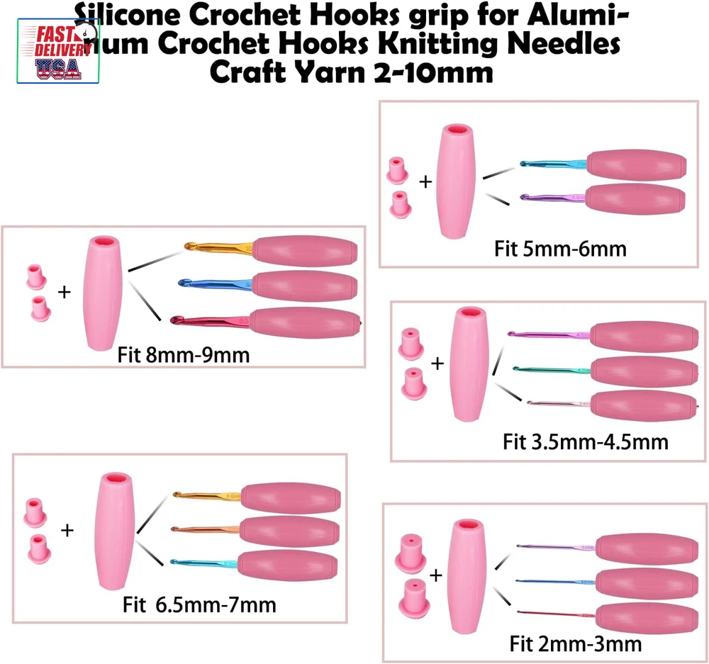Store New Arrivals Add to Favorite View Feedback Contact Silicone Crochet Hook Grip Multiple-Size Ergonomic Crochet Handle Interchangeable Crochet Hook Sleeve Ergonomic Crochet Hook Handle with Stitch Markers Description Number of Items 5 Color PINK Material Silicone Country of Origin China Item Weight 1.41 ounces Handle Material Silicone Recommended Uses For Product crocheting projects, crafting, and yarn work Number of Pieces 5 Special Feature Ergonomic Design Product Dimensions 4 x 4 x 0.5 inches Multiple Sleeve Sizes: The set includes 10 pink silicone sleeves in 5 different sizes, with 2 sleeves for each size, catering to 2mm-10mm aluminum crochet hook needle requirements. Complete Set Design: Comes with 1 middle connector, allowing easy installation and replacement of sleeves to ensure smooth crocheting. Comfortable Crocheting: Designed with ergonomic principles, providing a comfortable crocheting experience, reducing hand fatigue, and enabling longer enjoyment of crocheting. Included Stitch Markers: Each set comes with stitch markers to help you track your progress and enhance efficiency. The Pink Silicone Crochet Hook Grip Set is the perfect solution designed for various sizes of aluminum crochet hook needles. The set includes 10 pink silicone sleeves in 5 different sizes, with 2 sleeves for each size, meeting the requirements from 2mm to 10mm hook needles. The middle connector makes sleeve replacement a breeze, allowing you to quickly adjust during crocheting. Designed with ergonomic principles, it offers a comfortable crocheting experience, reducing hand fatigue and enabling longer enjoyment of crocheting. Each set also includes stitch markers to help you track your progress and enhance efficiency. Made of pink silicone material, the set is durable and easy to clean, ensuring long-term use. Choose the Pink Silicone Crochet Hook Grip Set for a more enjoyable and relaxed crocheting experience! ABOUT US We offer the best prices around on high quality products. Our E-store includes media such as books, movies, music and games while offering electronics, toys, sporting apparel, clothing, tools, general home, garden items and more. SHIPPING We are always working hard to ensure your package arrives as soon as possible. Please understand that some factors like weather, high postal traffic, and the performance of shipping companies are outside of our control. We offer free shipping to the lower 48 states and ship within 2 business days of payment, usually sooner. We do not accept P.O. Boxes. Please provide a physical address. For shipping outside of the continental USA, we only use eBay's Global Shipping Program.The item is shipped to KY and then sent to the rest of the world. International customers are responsible for all duties and taxes. Continue to check out in order to calculate costs for shipping the item to your country. Messages regarding eBay's Global Shipping Program MUST be directed at eBay EXCLUSIVELY. RETURNS We offer a 30-Day Return Policy on items which you are not completely satisfied with. You have the option for a full-refund or an exchange of the item. No returns are available on items shipped outside of the USA. PAYMENT We accept PayPal. CONTACT US This page content is yet to come Please ad us to your favorite seller and visit again later Thank You CUSTOMER SATISFACTION We try our very best to make sure every customer is completely satisfied. If there's a problem, message us! We're happy to help. WE ACCEPT Copyright © 2021 AutoDS. | All Rights Reserved