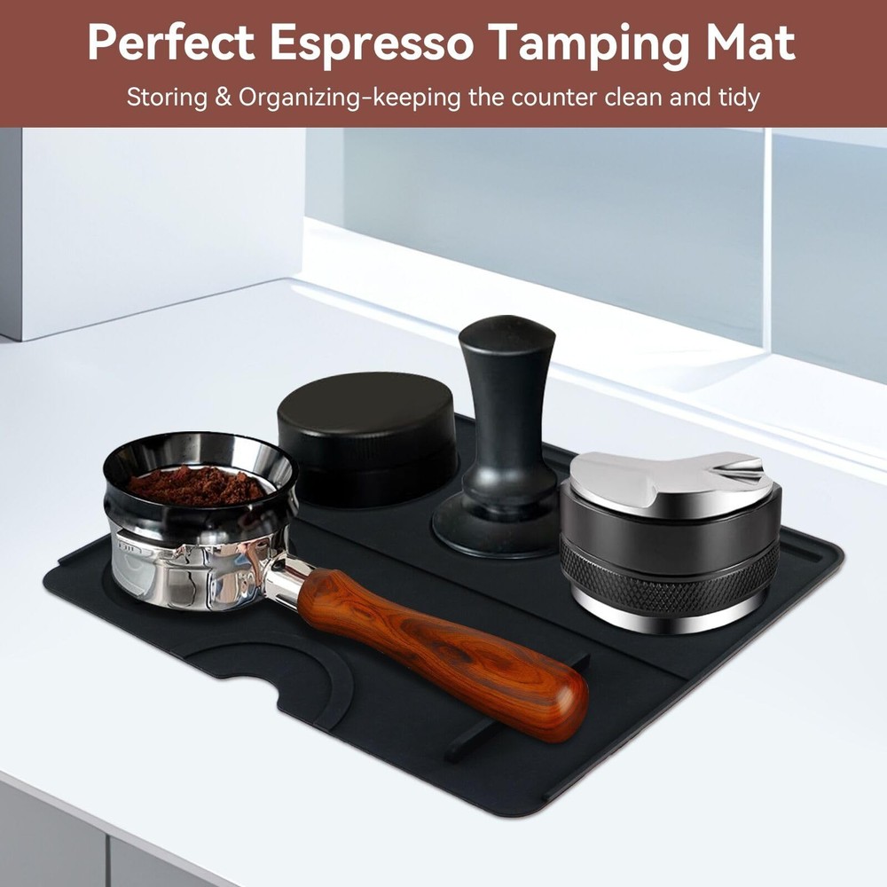 Silicone Espresso Tamping Mat with 4 Fluted Portafilter Holder
