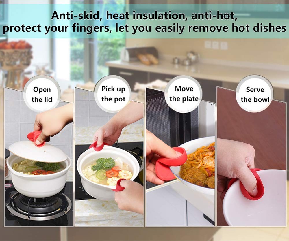 Silicone Pot Holders Provide Perfect protection for your hands while cooking or serving.Non-slip, high heat protection, ideal for handling hot pans or plates.Strong, Flexible, Easy to use, store & clean, dishwasher safe. 【Food-Grade Non-Stick Silicone】: Compared to most ordinary silicone gloves on the market, our silicone gloves are made of food-grade non-stick silicone, protect your health,safer & durable,stain & odor resistant. 【Oven Mini Mitts】:Mini gloves are not as clumsy as regular silicone gloves,easy to store. Fingers flexible and convenient, can take the plate at will, clean, not hot fingers, not crowded fingers. 【Insulated From Temperatures】:High quality Mitts are rated to protect you from heat up to 464℉(241℃) .Never burn your hands again from removing hot dishes from the microwave. 【Anti-Slip Design】:Exclusive anti-slip pattern design, never have to worry about slipping and losing your grip,more firmly grip. 【Suitable For Multiple Occasions】:Perfect addition to your kitchen essentials.Keep them and you will find they helps you a lot.Perfert for baking, cooking, serving or handling hot pan, plate, etc,strong, flexible, easy to use, store & clean, dishwasher safe.
