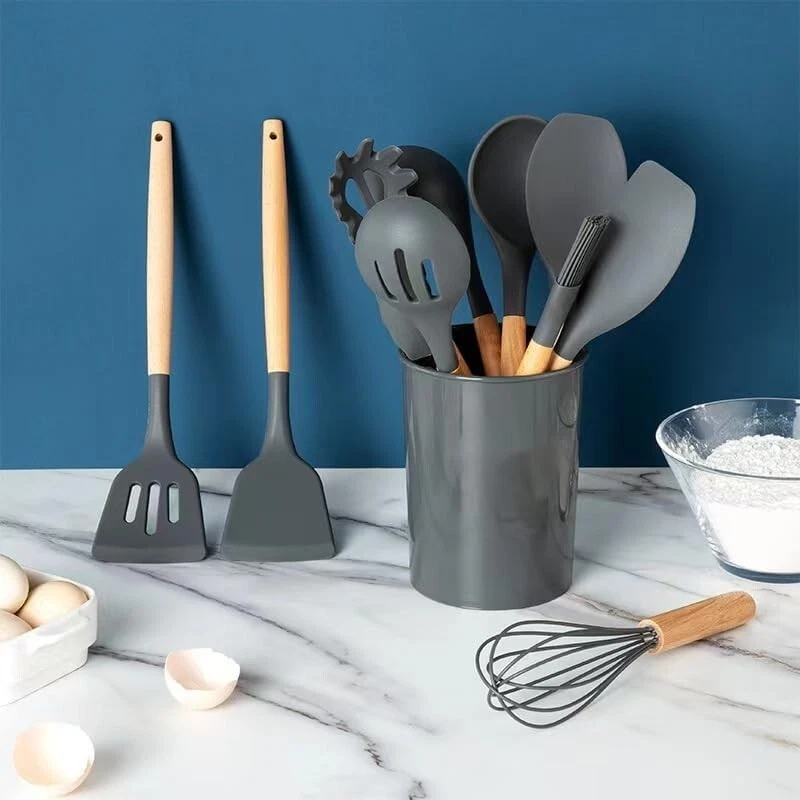 Color: Gray Set Includes: silicon set Country/Region of Manufacture: China Number of Items in Set: 33 Type: BPA Free Material: Silicone Handle Material: wood Brand: WALLBIG