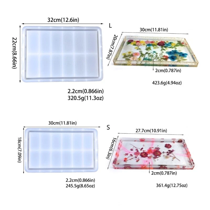 Features: Craft stylish and practical trays with our rectangular silicone mold, perfect for DIY enthusiasts. Our tray mold is made from high quality silicone, ensuring durability, flexibility, and easy use for a smooth and precise finish. Suitable for jewelry makers, crafters, and individuals seeking to organize their space. Use our tray mold to create functional storage for your desk or any cluttered area that needs organizing. Unleash your creativity by crafting unique trays to hold jewelry, office supplies, cosmetics, and more. Specifications: Material:Silicone Type:L/S L Size:Approx.32x22x2.2cm/12.6x8.66x0.86inches End Product Size:Approx.30x20x2cm/11.81x7.87x0.78inches S Size:Approx.30x18x2.2cm/11.81x7.09x0.86inches End Product Size:Approx.27.7x16x2cm/10.91x6.3x0.78inches Package Includes: 1Piece Rectangular Silicone Tray Mold note: Please allow 1-2cm error due to manual measurement. Please make sure you do not mind before you bid. Due to the difference between different monitors, the picture may not reflect the actual color of the item. Thank you!