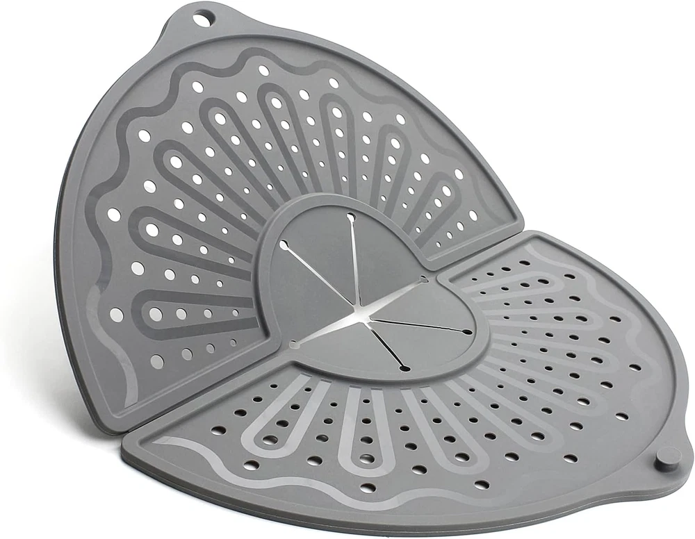 PREMIUM SPLATTER SCREEN: The splatter screen is made of food-grade silicone material, which is healthy and BPA free, you can be safely used, and the size is for 10, 11 and 12 Inch Frying Pan, it could avoid most oil spatter and keep you kitchen clean. SPLATTER SCREEN FOR FRYING PAN: You can add water or other ingredients in the middle of the splatter guard when you are cooking, you don't have to lift the lid to prevent the heat from escaping, you can also use it when you are stirring egg and flour to avoid egg liquid splashing. CLEAN EASILY OIL SPLATTER GUARD: Compared with the metal splatter screen, the silicone splatter screen is easier to clean, the oil stain is easy to get stuck in the metal material, and the silicone splatter screen just cleaned with soapy water, and it is dishwasher safe. EASY TO STORE GREASE SPLATTER GUARD: The folding grease splatter guard is convenient to stir fry, you can see the cooking of the food in the pan, so the food will not be burned, and it is easy to store when folded, which could save your kitchen space. MULTIPURPOSE SPLASH GUARD: The folding splatter screen also as a trivet mat, which could protect your kitchen countertop and table. We stand by our product with our outstanding customer service, If you have any problems, please . Product Description Silicone Splatter Screen The grease splatter guard is made of food-grade silicone material, it is healthy and BPA free, you can be safely used. The silicone splash guard is easier to clean than the metal splatter screen, the silicone oil splatter guard just cleaned with soapy water, it is dishwasher safe. The folding splatter screen for frying pan is multipurpose, not only can it avoid most oil spatter, but it also as a trivet mat, it is a good helper in your kitchen. Splash Proof Add Ingredients Trivet Mat