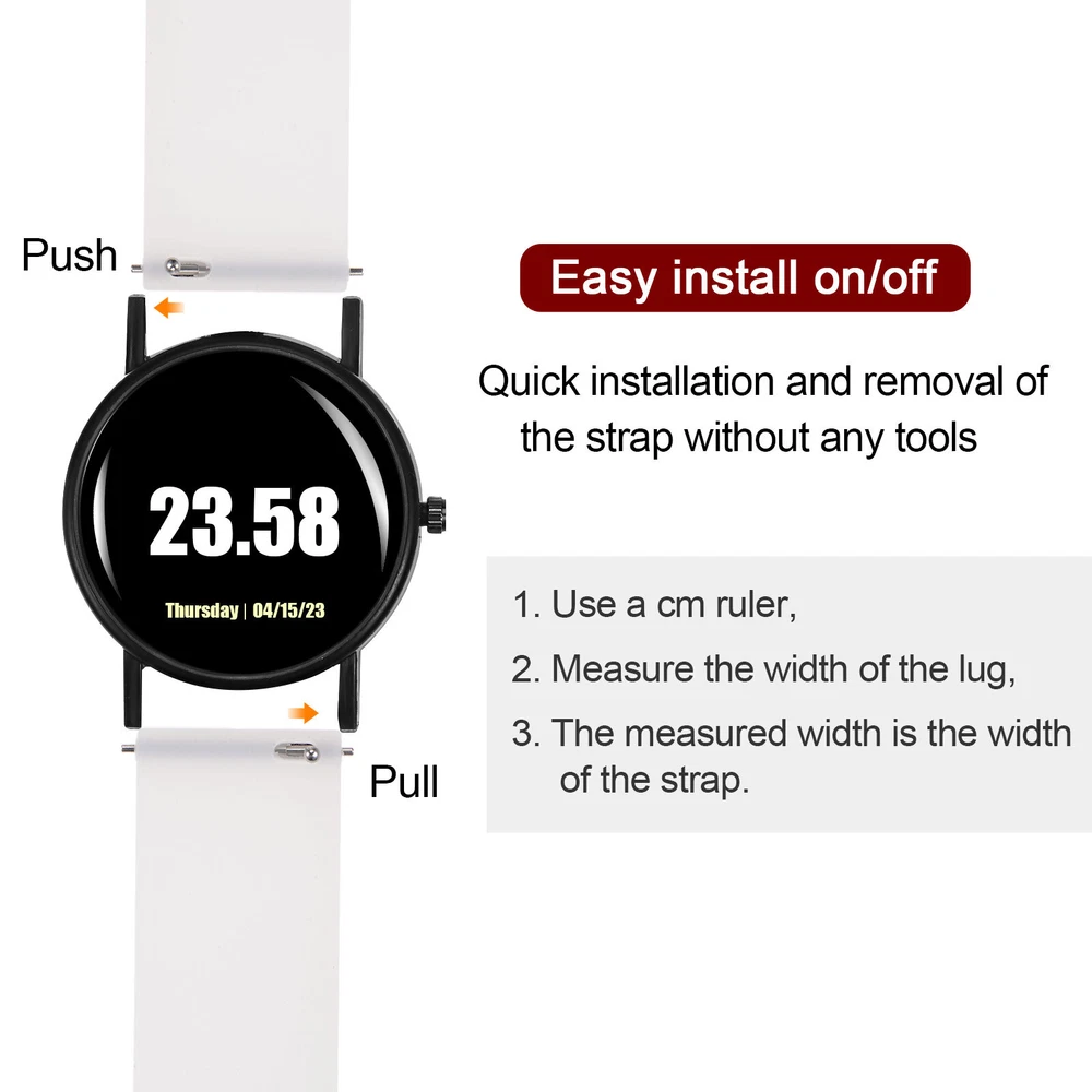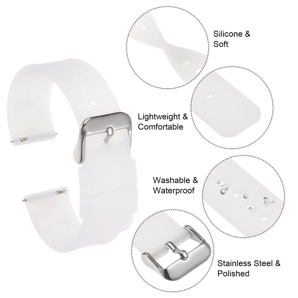 Document The soft strap is made of silicone rubber with polished stainless steel buckle, sweat, rain, and water resistant for swimming, diving, and other high-intensity workouts.Quick-release spring bars allow you to swap straps in seconds without any tools, adding a new style replacement band to your watch.The silicone strap design is stylish, elegant and sophisticated, suitable for both men and women, making your watch look brand new. Our classic replacement watch straps fit any traditional or smart watch with 20mm width lugs, such as Gear S3 Watch.Please measure the width of your watch lug before ordering and your watch's lug width is the exact width of the band you select. Silicone Watch Band 20mm Quick Release Soft Rubber Watch Strap, Transparent The soft strap is made of silicone rubber with polished stainless steel buckle, sweat, rain, and water resistant for swimming, diving, and other high-intensity workouts. Quick-release spring bars allow you to swap straps in seconds without any tools, adding a new style replacement band to your watch. The silicone strap design is stylish, elegant and sophisticated, suitable for both men and women, making your watch look brand new. Our classic replacement watch straps fit any traditional or smart watch with 20mm width lugs, such as Gear S3 Watch. Please measure the width of your watch lug before ordering and your watch's lug width is the exact width of the band you select. Hot Item Payment 1.We accept eBay payment . 2.Payment must be received within 7 business days of auction closing. Shipping 1.We ship to your eBay or Paypal address. Please make sure your eBay and Paypal address is correct before you pay. 2.Items will be shipped within 1-3 business day when we received payment. 3.Delivery time depends on destination and other factors. Description Policy Silicone Watch Band 20mm Quick Release Soft Rubber Watch Strap, Transparent The soft strap is made of silicone rubber with polished stainless steel buckle, sweat, rain, and water resistant for swimming, diving, and other high-intensity workouts. Quick-release spring bars allow you to swap straps in seconds without any tools, adding a new style replacement band to your watch. The silicone strap design is stylish, elegant and sophisticated, suitable for both men and women, making your watch look brand new. Our classic replacement watch straps fit any traditional or smart watch with 20mm width lugs, such as Gear S3 Watch. Please measure the width of your watch lug before ordering and your watch's lug width is the exact width of the band you select. Hot Item Payment 1.We accept eBay payment . 2.Payment must be received within 7 business days of auction closing. Shipping 1.We ship to your eBay or Paypal address. Please make sure your eBay and Paypal address is correct before you pay. 2.Items will be shipped within 1-3 business day when we received payment. 3.Delivery time depends on destination and other factors.