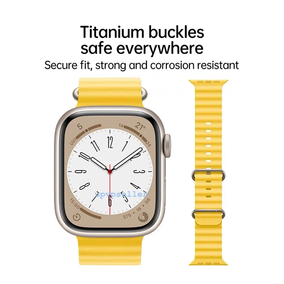 For Apple Watch Ocean Band Sports Strap iWatch Ultra Series 8 7 6 SE 44/45/49mm For Apple Watch 38mm/40mm/41mm use same watch band , 42mm/44mm/45mm/49mm use same watch band Description: The Ocean Band is molded in a high performance elastomer with a tubular geometry allowing it to stretch for a perfect fit, even over a wetsuit. The corrosion-resistant stainless steel buckle and adjustable loop secure the band during high-speed water sports. Also suitable for wearing while doing other sports, or daily using. Material: Silicone One Size: Watch Band fits 130–200mm (5.12"-7.87") wrists. Compatible With: For Apple Watch Ultra / Series 8 / Series 7 / Series 6 / Series 5 / Series 4 / Series 3 / Series 2 / Series 1 / SE / Package Includes: 1 x Watch Band or 1x Clear Cover (Please Kindly Note The Apple Watch is Not Include) Payment Delivery details About feedback About us Contact us Payment PayPal only Only ship to PayPal confirmed address. Delivery details 1. All returns require a Return Merchandise Authorization (RMA) number to avoid any delays. 2. All product needs to remain in its original state, carefully rewrap the products if open. 3. Any return for a refund may be subject to a 15% restocking fee if opened. 4. Products that are not eligible for return and will be sent back to you at your cost and expense if received by us: • Any product not purchased from us • Any product that is returned without all original packaging and accessories • Any product that exhibits physical damage 5. We only cover shipping cost for USPS Postal Service. About feedback About us Working time:Monday to Friday, usualy reply in 24 hours on working day Contact us Any queries or issues incurred, please feel free to contact us Via Ebay message we are always here ready for help. Pls do’nt leave negative feedback without asking for help. Highly appreciated your POSITIVE feedback & 5 star DSR. Enjoy shopping!