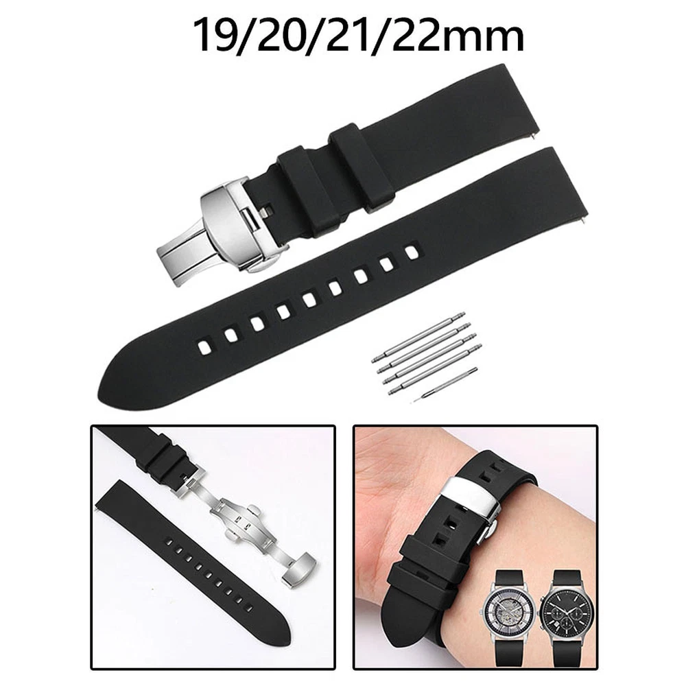 Home & Garden | Jewelry & Watches | Sporting Goods | Business & Industrial | eBay Motors | Toys & Hobbies | Health & Beauty Silicone Watch Strap Replacement Premium Butterfly Clasp Wristwatch Strap Description: 【Quick Release Design】: This watch band features a convenient quick release mechanism that allows for easy installation and removal. The inner groove design enhances breathability and ensures a comfortable fi 【Secure Butterfly Clasp】: Equipped with a double push button butterfly clasp, this band offers secure fastening. Simply press the side buttons to effortlessly open the clasp 【Premium Material】: Made from quality silicone rubber, this strap is waterproof, breathable, soft to the touch, and resistant to dust accumulation 【Occasions】: This watch band can match your different outfits or occasions, which will give a new look to your watch, ideal for daily leisure, and outdoor and athletic activity 【Package Includes】: The package contains 1x watch band along with four 1.5mm spring bar and 1x spring bar tool for easy installation Specification: Material: Silicone Package Includes: 1 Silicone Watch Strap Note: Please allow slightly errors 1-2cm differences due to manual measurement. Payment Shipping Returns If you are bidding or ordering more than one item, the items will be combined into one order automatically thus you can pay altogether. If you want not to combine, please buy one and immediately pay one separately. Please pay what you win in 7 days. Unpaid Dispute will be automatically open if payment is not received after 7 days. If you pay the bill after received unpaid dispute, please email us to close the unpaid dispute. Because the unpaid dispute will not be closed automatically, and we may ignore it. The buyer is responsible for any applicable import duties and local taxes. Please verify with your customs before making your purchase. Please verify your address during checkout. We are not responsible for any wrong or undeliverable addresses. We are committed to give you the best customer service possible. If for any reason you are unsatisfied with a purchase, please contact us and we'll assist you with a prompt solution. Please let us work on the issues. We'd like to settle any problem in a friendly manner. Please do not open a case on eBay or PayPal, or leave any negative or neutral feedbacks directly! We always reply to messages within 2 business days (off-duty at weekend). Due to the difference of time zone between Hong Kong and your location, sometimes the answer will be delayed. If you do not get a response from us after 2 business days, please check your junk or spam mailbox. Unsatisfied product can be returned within 30 days from the delivery date . We can offer a full refund or exchange, but we are not responsible for return shipping cost. Please contact us to get a RMA number before sending out your return. Feedback: 1. Since your feedback is very important to our business's development, we sincerely invite you to leave positive feedback with four 5-Detailed Selling Rating (DSR) to us basing on your satisfaction with our commodity and service. It's just take you 1 minute. 2. Unfortunately, If you are planning to give us a neutral/negative feedback because of your bad buying experience with us, please contact us at any time so as to clear up your discontent and resolve the problem. Featured Products People always bought together with