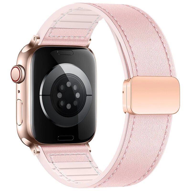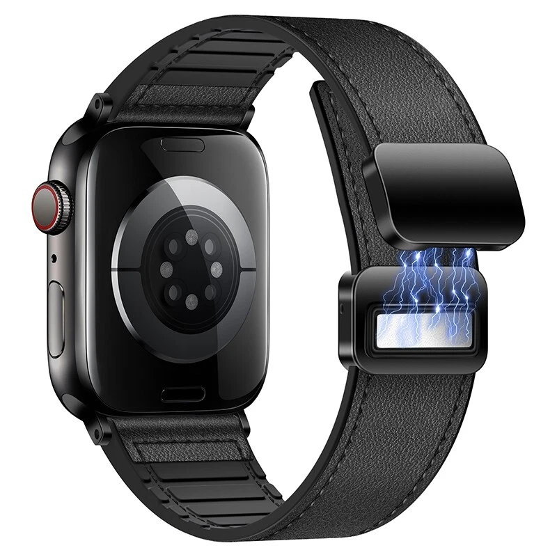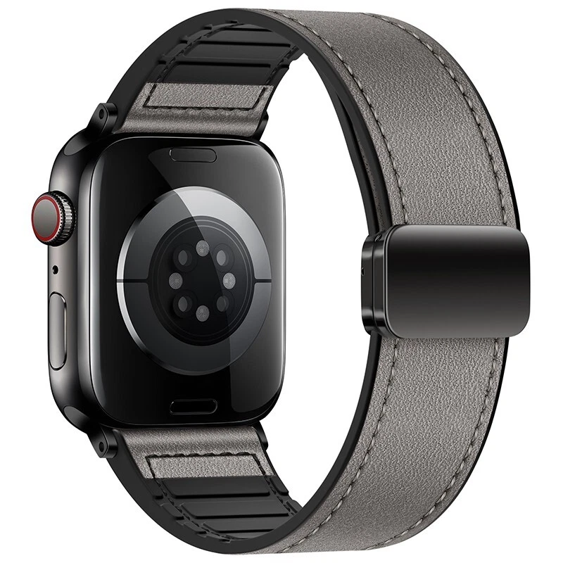 Silicone leather strap for Apple Watch Series 10 9 8 7 6 SE 40/44/41/45/46/49mm Features: ● 100% brand new high quality. ● Fashion and sports in one. If you want to go to a party or go out on a Friday night or work out at the gym for an active lifestyle, just show off your Apple Watch. ● Made of high-quality silicone and leather, it is durable, stylish and breathable. ● Double magnetic buckle reinforced design for a firmer fit. ● The high-quality material is soft and comfortable, and it fits the wrist closely. ● As with all Apple Watch bands, you can pair this band with any Apple Watch case of the same size. ● Suitable for slim size: > 38/40/41/42mm Size: Fits 5.12"-7.28" (133mm-190mm) wrists > 44/45/46/49mm Size: Fits 5.7"-8.66" (145mm-220mm) wrists Compatible: > Available on Apple Watch Ultra / Ultra 2 > For Apple Watch Series 9 / Series 8 / Series 7 / Series 6 / Series 5 / Series 4 / Series 3 / Series 2 / Series 1 / > for Apple Watch Nike > for Apple Watch Hermes > for Apple Watch SE Package Contents: 1x PACK silicone leather strap !! !!! ( PS: The Apple Watch in picutures is Not Included )