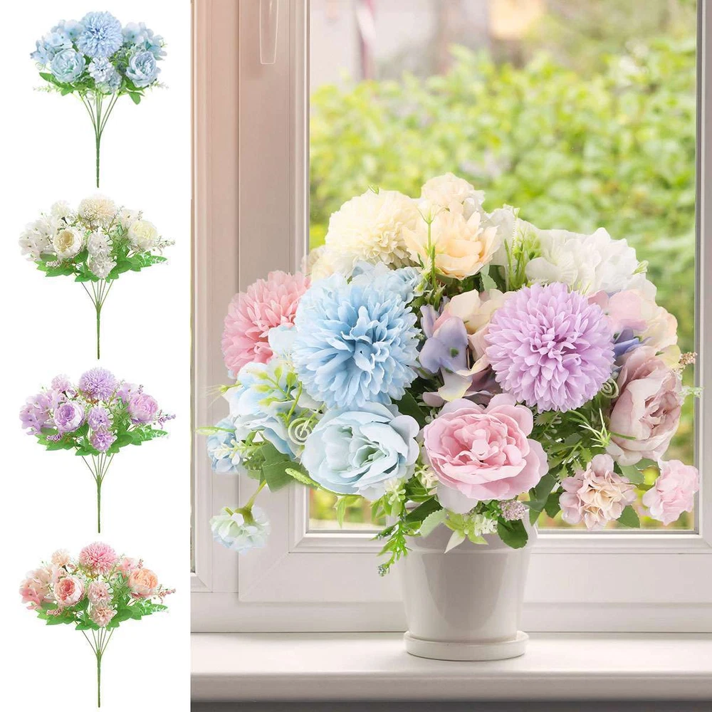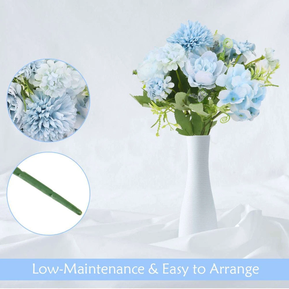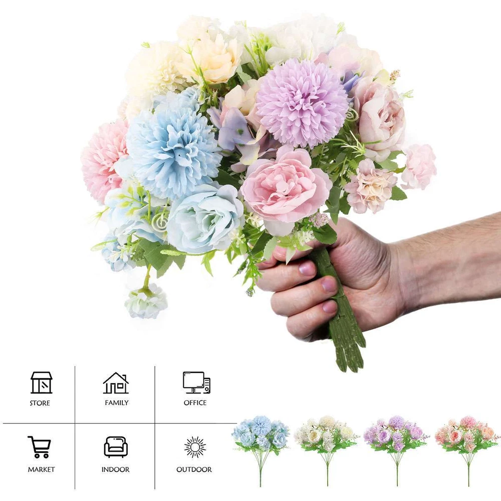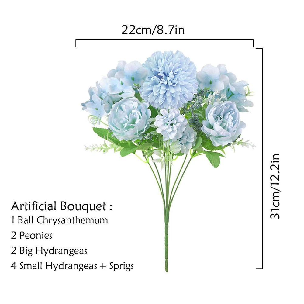 Product Description Specifications: Material: Plastic + Cloth Optional Color: Pink, Purple, White, Blue Size: 31*22cm / 12.2*8.7in Type: Artificial Bouquet (1 Ball Chrysanthemum + 2 Peonies + 2 Big Hydrangeas + 4 Small Hydrangeas + Sprigs) Features: · Beautiful Artificial Flower Arrangement: This artificial flower bouquet is a beautiful arrangement of ball chrysanthemum, peonies, hydrangeas and sprigs, vivid and lovely. · One Stalk & 7 Adjustable Stems: The stems of the glamorous blooms are on one stalk that easy to arrange in a vase and the stems are made of wires that easy to adjust for a perfect appearance. · Great for DIY Centerpiece: The artificial flower bundle is excellent filler for centerpiece and can give an elegant touch to you room. · Multipurpose Flower Ornament: The faux flower bouquet is great for indoor decoration, decorating your desk / shelf / window / living room / office, DIY projects and many occasions like weddings, parties, gatherings, dining, etc. · Multiple Color Options: It is available in pink, purple, white and blue 4 colors to meet different color scheme and your preference. Notes: * Due to effect of light, camera and monitors, the item’s real color may be slightly different. * Allow slight dimension difference due to manual measurement. * Thank you for your kindly understanding. WARNING for California Residents: This product can expose you to chemicals including Diisononyl phthalate (DINP), which is known to the State of California to cause cancer. For more information, go to: https://www.p65warnings.ca.gov/. Package Includes: 1 PC Artificial Flower Bundle (Others are NOT included) Payment Shipping Returns Feedback PayPal is easy and safey, and we can accept PayPal payment Please do not hesitate to contact us if you have any questions of payment procedures 1.Items dispatched to buyer's PayPal comfimed address from Monday to Saturday(Sunday & Holiday excluded) via USPS within 20 hours after payment has been received.Please check your shipping address carefully before checkout.If you want to change the address, pls kindly contact us through ebay message within three hours after payment.Otherwise, any change information may be disregarded once dispatched. 2.Items are generally shipped usually after an approved payment by the buyer(Saturday and Sunday excluded). 3.Shipping from warehouses in CA usually takes 3-5 business days to reach completion for orders within the US placed by USPS first class mail(tracking numbers available). 4.Do not provide local pick up service. Returns will be accepted within 30 days after delivery. However, if the item is damaged upon arrival, buyers must contact us within 3 days after delivery for any refund or replacement. Returns will not be accepted if buyers caused any damages to the item. Refunds are given as Exchange or Money Back. 1.If you are satisfied with the product you received, please leave us positive feedback and 5 scores DSR. 2.If you are dissatisfied for any reason, please donot be quick to leave negative/neutral feedback. Pls contact with us via Ebay message, We work hard to resolve any problem to make sure EVERY CUSTOMER 100% SATISFIED and always leave positive feedback to all our customer. 3.If you feel delighted with this transation, Pls give us all 5-stars. We strive for 5-star service by providing high-quality goods and perfect service. Therefore, pls take the transaction seriously. (Positive)feedback is simply what we seek for. If you have any problems about your purchase, just let us know through "MY MESSAGES". We promise that we will try our best to solve problem for you since our mission as ebay seller is make sure that you are satisfied with your every transaction. So Pls contact us first to get the best solution before leave a (Negativa)or (Neutral)feedback Payment PayPal is easy and safey, and we can accept PayPal payment Please do not hesitate to contact us if you have any questions of payment procedures Shipping 1.Items dispatched to buyer's PayPal comfimed address from Monday to Saturday(Sunday & Holiday excluded) via USPS within 20 hours after payment has been received.Please check your shipping address carefully before checkout.If you want to change the address, pls kindly contact us through ebay message within three hours after payment.Otherwise, any change information may be disregarded once dispatched. 2.Items are generally shipped usually after an approved payment by the buyer(Saturday and Sunday excluded). 3.Shipping from warehouses in CA usually takes 3-5 business days to reach completion for orders within the US placed by USPS first class mail(tracking numbers available). 4.Do not provide local pick up service. Returns Returns will be accepted within 30 days after delivery. However, if the item is damaged upon arrival, buyers must contact us within 3 days after delivery for any refund or replacement. Returns will not be accepted if buyers caused any damages to the item. Refunds are given as Exchange or Money Back. Feedback 1.If you are satisfied with the product you received, please leave us positive feedback and 5 scores DSR. 2.If you are dissatisfied for any reason, please donot be quick to leave negative/neutral feedback. Pls contact with us via Ebay message, We work hard to resolve any problem to make sure EVERY CUSTOMER 100% SATISFIED and always leave positive feedback to all our customer. 3.If you feel delighted with this transation, Pls give us all 5-stars. We strive for 5-star service by providing high-quality goods and perfect service. Therefore, pls take the transaction seriously. (Positive)feedback is simply what we seek for. If you have any problems about your purchase, just let us know through "MY MESSAGES". We promise that we will try our best to solve problem for you since our mission as ebay seller is make sure that you are satisfied with your every transaction. So Pls contact us first to get the best solution before leave a (Negativa)or (Neutral)feedback powered by