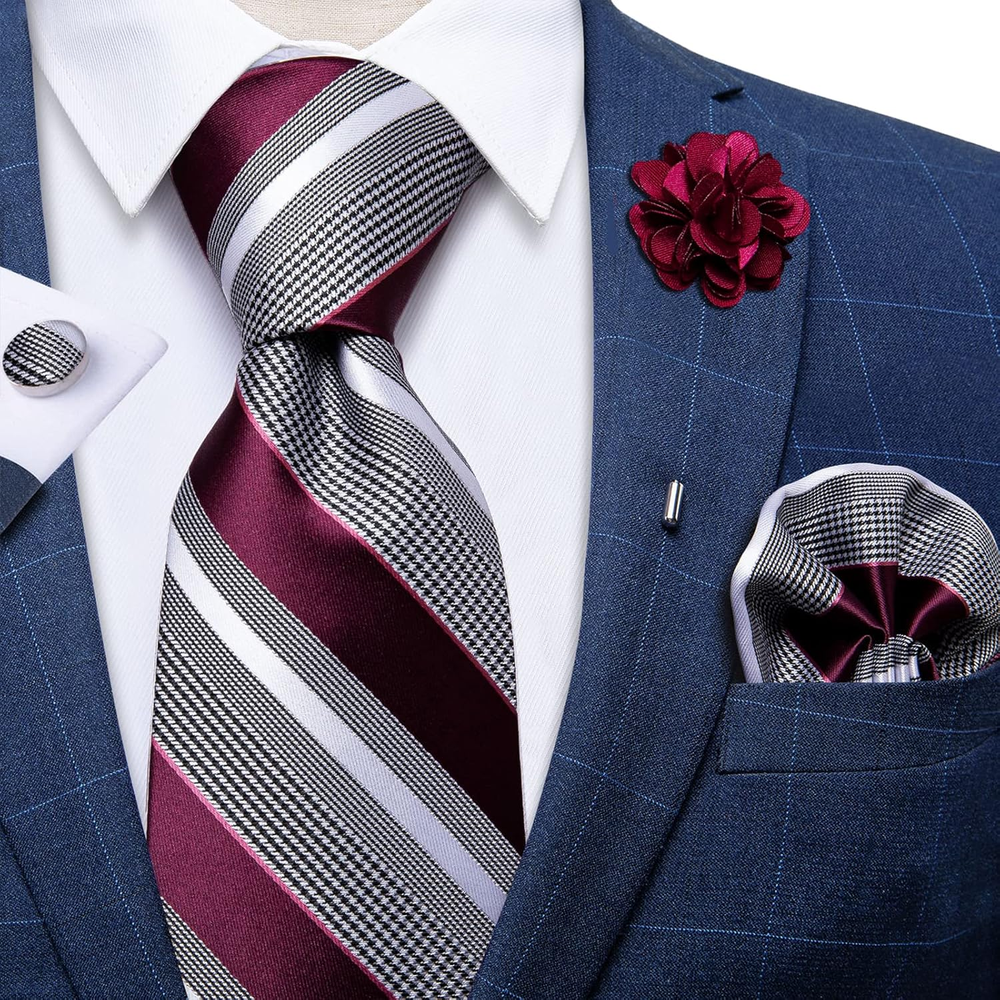 Product description DiBanGu specializes in high-end accessories(tie/pocket square/cufflinks/bowtie/vest) for men and is dedicated to creating a unique fashion for gentlemen. While bringing fashion, it also brings exquisite quality and service. DiBanGu is designed for all men who live in the world's metropolises with elegance, maturity, fashion and quality. The stylish European design and classic motifs perfectly match the suit tuxedo, making mens different at dances, weddings, banquets, ceremonies, formal meetings, casual gatherings, and important moments. DiBanGu's main markets include the United States, China,the United Kingdom, Canada, France, Italy, Spain, and Japan,and obtained a lot of friends from all over the world. Snazzy Looking, Great Quality,Unique tie for you over thousands of choices of neckties in our shop,Paisley/Plaids/Solid/Stripe/Floral/Gold/Black/Pink/Blue/Red/Purple ect are all available,exclusive design mens tie set for you! Mens Gift Tie Set elegant necktie As we know, fine feathers make fine birds, a same suit can look totally different with different ties. Sometimes you can pick a new tie to light up an old suit. An exquisite accessory can make a normal dress more elegant in most cases. 1)Package Contains:Necktie+Pocket Square+Cufflinks+Tie Clip+Gift Box.It's exquisite gift for men. 2)Excellent Material:2000 stitches jacquard woven craft, high-density fabric makes the tie non-deformed and soft. 3)ELEGANT DESIGN:Exquisite pattern is perfect match with suit tuxedo,make you out of ordinary in any occasion,such as:Wedding,Daily Dress, Business, Office, Meeting, Birthday, Engagement, Party, Prom. Details of item Applicable Occasions ■Fashionable tie,can be used for casual and formal occasions ■Daily Dress, Business,Father's Day,Office, Meeting, Birthday, Engagement, Wedding, Party, Prom,Anniversary,Christmas Day,Valentine's Day,Thanksgiving Day ect Material and Craft ■ Necktie and pocket square are made from Silk. 2000 stitches jacquard woven craft. ■ Double-layer sewing in the middle of the tie prevents separation of the fabric and the interlining during the washing process. Effectively prevent deformation after washing. Fabulous Gift Set ■ Handmade for high quality.Not only for personal use, but also for gifts to your love ones,such as father,son,boyfriend,friend,husband. Suit for More Occasions Wedding Occasion Party Occasion Business Occasion Daily Occasion