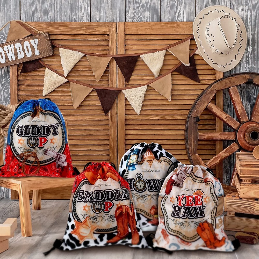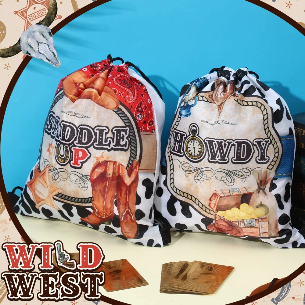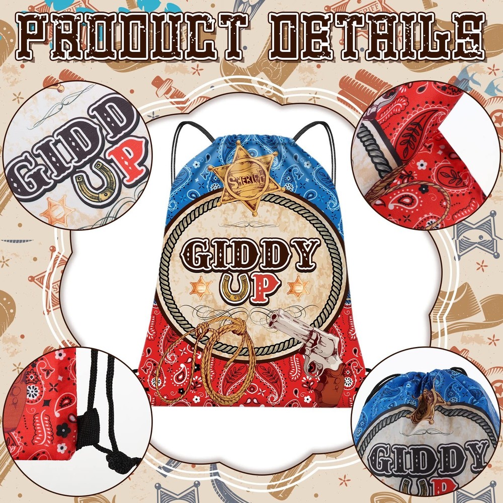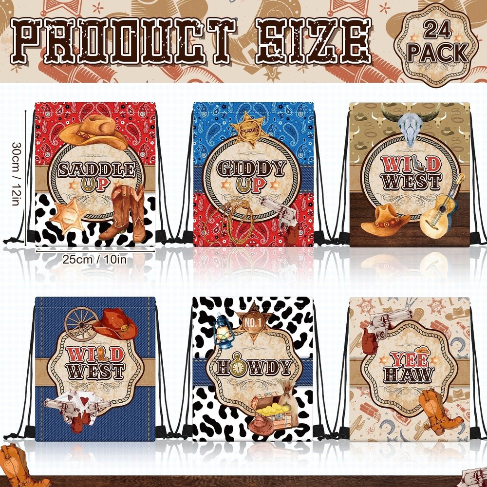 Silkfly 12 Pcs Wild Western Cowboy Party Drawstring Backpack Bag Beach Sports Cinch Bag for Cowgirl Birthday Supplies Product Details Number of Items: 12 Brand: Silkfly MPN: HAA-Silkfly-447 UPC: Does not apply EAN: Does not apply Package Dimensions: 14.49 x 2.48 x 2.4 inches Item Weight: 9.9 ounces Country of Origin: China Item model number: HAA-Silkfly-447 Department: unisex-adult Manufacturer: Silkfly Age Range Description: Adult Number Of Items: 12 Units: 12 Count Package Includes: you will get 12 pieces of western cowboy party drawstring backpacks, designed in 6 cool styles, which are enough to meet your daily wearing or sharing needs, as well as served as party decorations Lightweight and Reliable Material: the cowboy drawstring bags are made of quality polyester material, reliable, sturdy and durable, hard to break or deform, and easy to clean without fading easily, lightweight and will not cause much burden to you, reusable and long lasting for a long time Portable Size: each string bag backpack is measured approx. 12 x 10 inches/ 30 x 25 cm and can hold most of the items you need for a west cowboy party, these bags are foldable and easy to store for easy portability; The proper capacity is ideal for holding gifts, candies, desserts, snacks, dolls, and more, besides, you can also use it to store daily necessities, such as books, water bottles, clothes, shoes, and so on Classical Cowboy Theme Elements: these drawstring party favor bags are designed with many classical western cowboy elements, such as cowboy hats, boots, wheels, cow skulls, and so on, full of cowboy style, making your cowboy themed party more delightful and memorable Western Cowboy Party Decorations: these cowboy theme draw string bags can be widely applied as gift bags for many occasions, including birthday parties, holidays, Western cowboy parties, cowgirl parties, family gatherings, friends reunions and so on, and they also can be applied for traveling, hiking, summer camping, and other outdoor activities