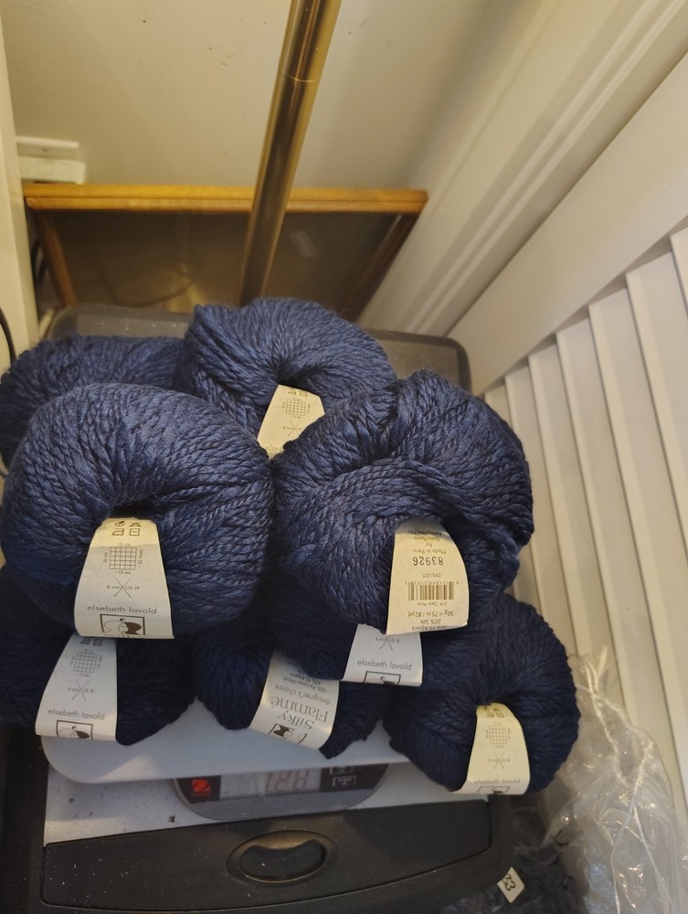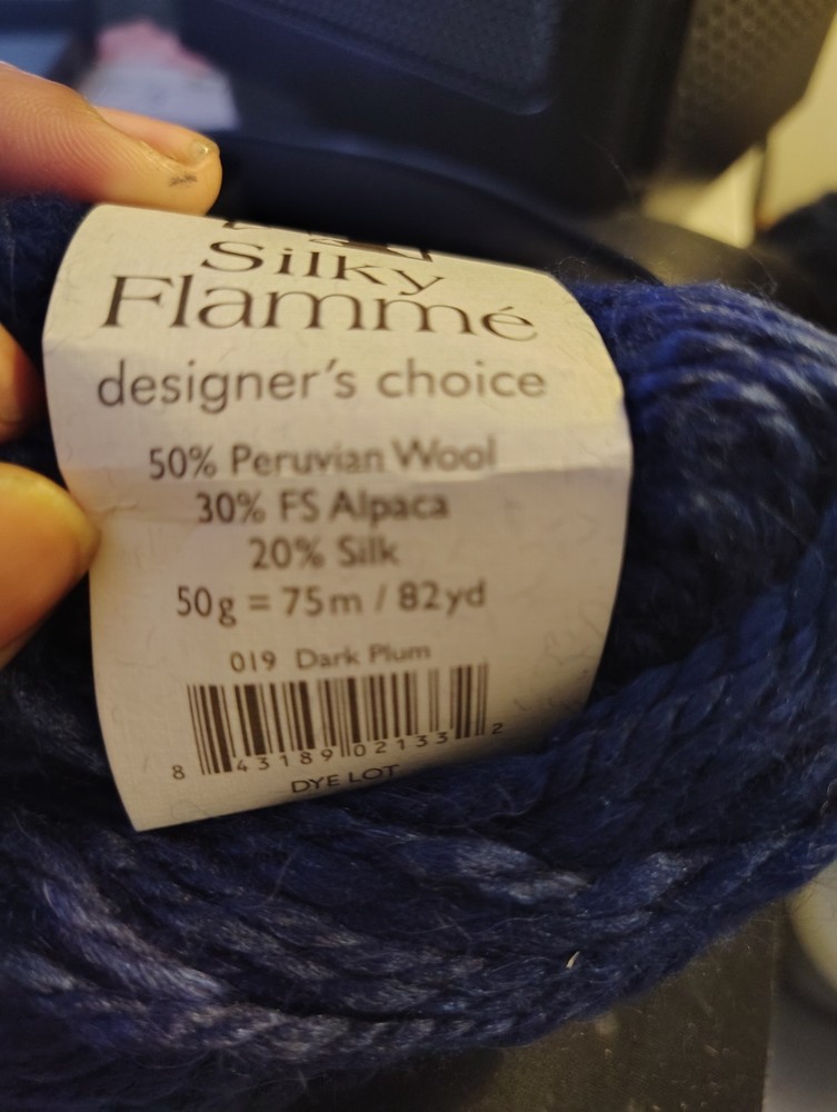 This luxurious 11-skein set of Silky Flamme yarn in a rich dark blue shade combines softness, sheen, and a slightly textured twist — perfect for elegant, cozy projects. Brand: Silky Flamme Color: Deep, rich Dark Blue Quantity: 11 skeins Fiber Content: Typically a blend of Alpaca and Silk (often 80% Alpaca / 20% Silk) Texture: Soft, slightly thick-and-thin with a natural flame (flamme) twist Weight: Worsted to bulky (varies slightly by batch) Ideal for: Scarves, sweaters, shawls, hats, and luxurious accessories Silky Flamme offers the warmth of alpaca with the elegant sheen of silk, all in a beautifully textured yarn that creates stunning visual depth. This bundle is perfect for both mindful makers and bold designers looking to create standout pieces in a timeless color.