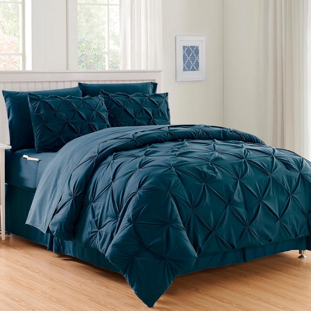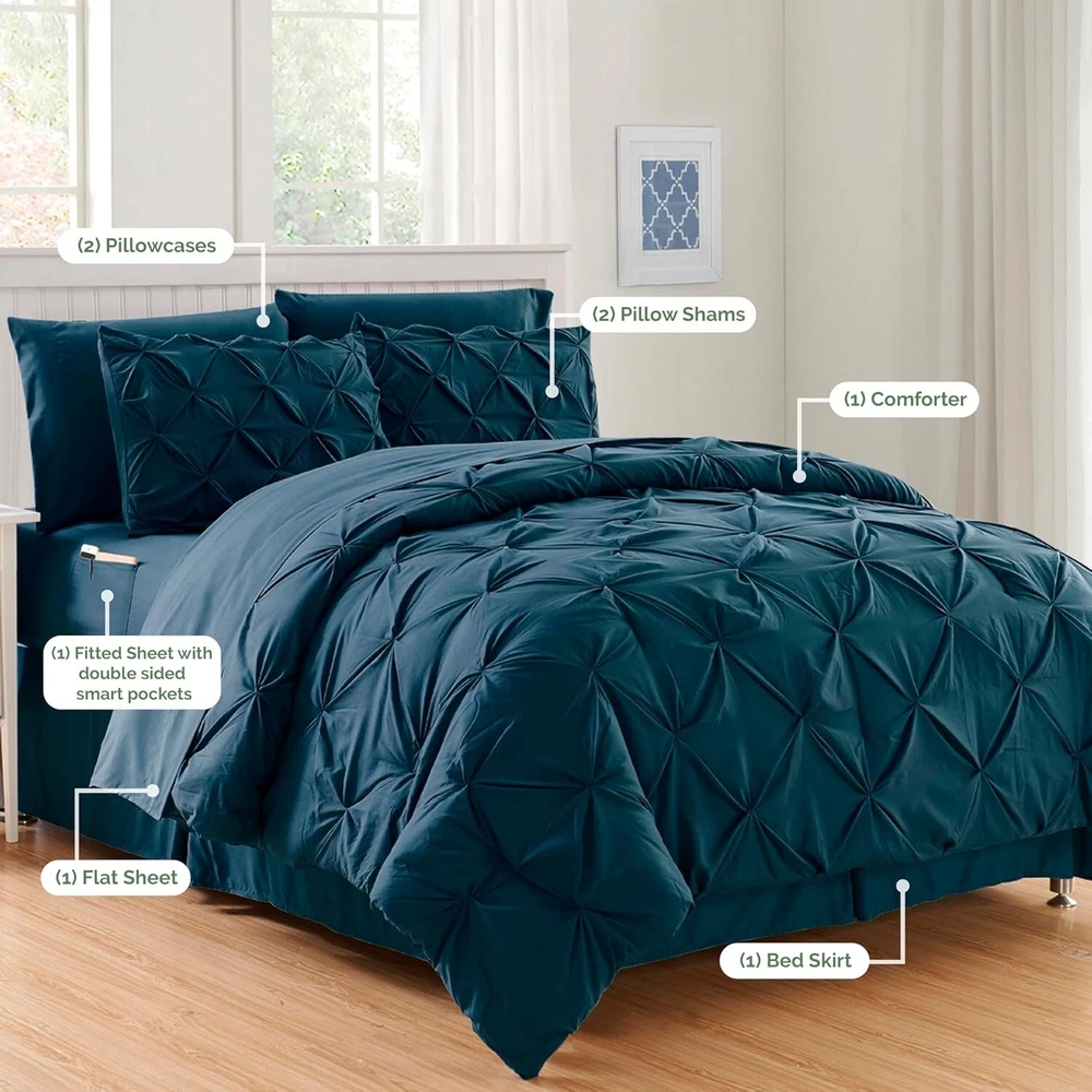 This comforter set is a dream! The navy microfiber feels incredibly soft and luxurious, making bedtime something to look forward to. The 8-piece set has everything you need, and the storage bag is a handy bonus. Washes well, stays cozy, and instantly elevates your bedroom. Perfect for upgrading your sleep without breaking the bank—highly recommend!