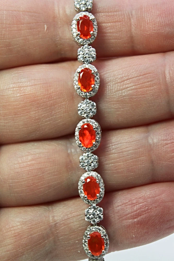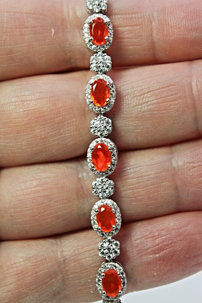 Brand: Unbranded Material: Gemstone Features: Adjustable, Nickel-Free Metal: Sterling Silver Colour: White Country of Origin: Mexico Type: Bracelet Certification: None Style: Tennis Diamond Colour Grade: Not applicable Metal Purity: 925 parts per 1000 Main Stone: Fire Opal Main Stone Colour: Orange Setting Style: Prong Main Stone Creation: Natural Number of Diamonds: 0 Main Stone Treatment: Not Treated Shape: Oval Base Metal: Sterling Silver MPN: Does Not Apply Charm Type: 0 Hallmarked: Yes Secondary Stone: Created White Zircon Stones Number of Gemstones: 319 Item Length: 17.7 to 20.3cm 7 to 8 inches Diamond Clarity Grade: Not applicable Chain Type: Curb Link Main Stone Shape: Oval Coloured Diamond Intensity: Not applicable Cut Grade: Very Good Total Carat Weight: 7.8 ctw