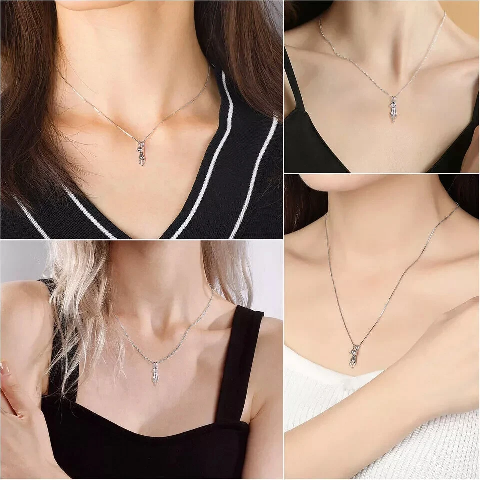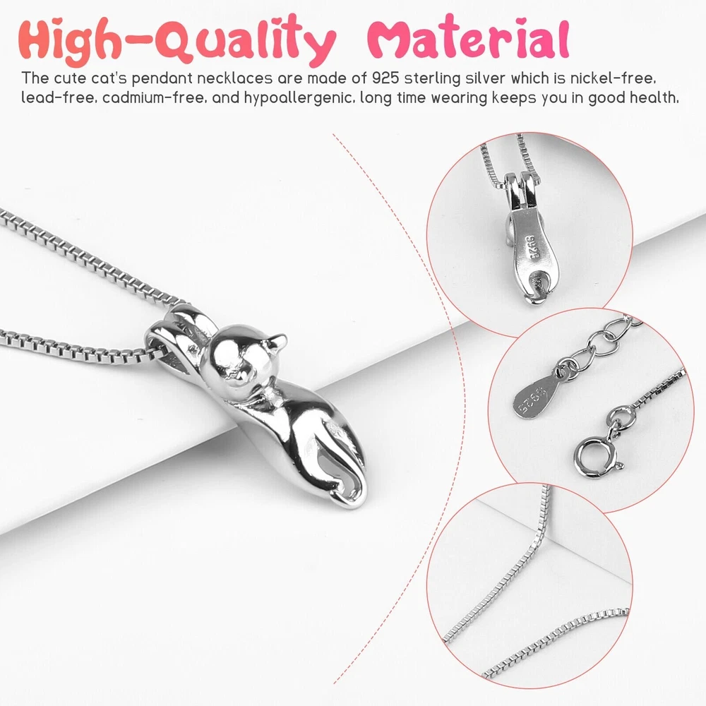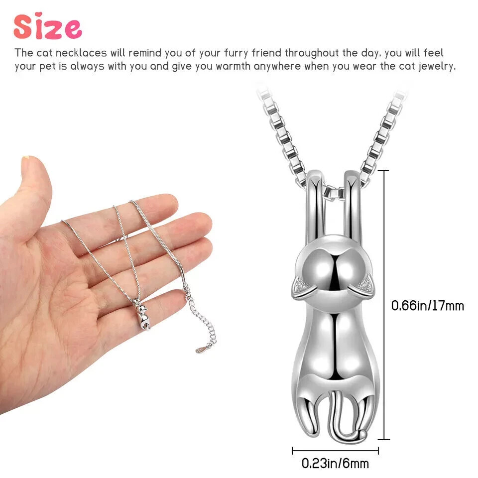 This fashion dainty necklace for women or girl, is your perfect winter jewelry. It can be worn every day for a casual look and paired with the matching necklace pendant to complete your outfit. Color: 925 Sterling Silver Plated NECKLACE SIZE - Pendant Size: 1.14*0.34 inches (29*8.6mm); Chain Length: 18inches+2inches extension/Resizable which make sure it will fit perfectly on anyone. Clasp Type: Lobster-Claw-Clasps, easy to put on; ♥WONDERFUL BIRTHDAY GIFT♥ - Give this pretty sterling silver pendant necklace as a unique present to your loved ones, like lover, girlfriend, wife, fiancee, mother, mother in law, daughter, your friend, or even yourself for valentine's day, mother's day, christmas day and so on, express your love to them, and make them feel very special and charming just like the star. It is also a good choice for engagement or wedding jewelry, which is endowed with special significance. Package Included: 1PC Cat Kitty Pendant Necklac NO Retail Box. Packed Safely in OPP Bag. Note:Due to the resolution of the computer screen is different, the physical colors may be different from the picture, which is a normal phenomenon, please mind the buyer carefully to buy