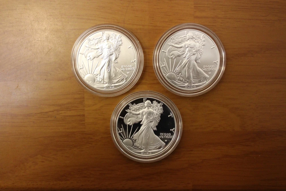 Silver Coin Lot of 17 - 1 Oz Each - Uncirculated - Proof - American Eagles Coins in pictures are those being sold. Please refer to pictures to judge condition. If you have any questions, please ask before bidding. Your purchase will be shipped within two business days after payment has been received. Will be shipped USPS Mail with Insurance . Thank You 25SC17-x1