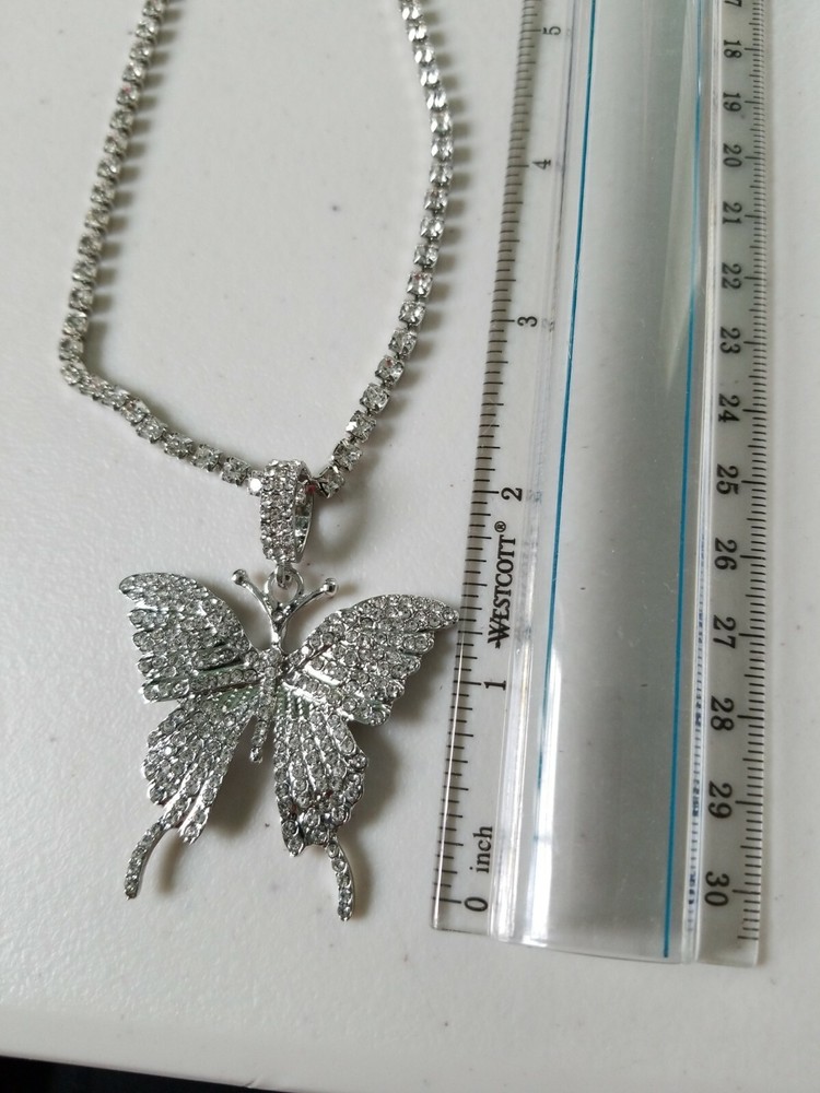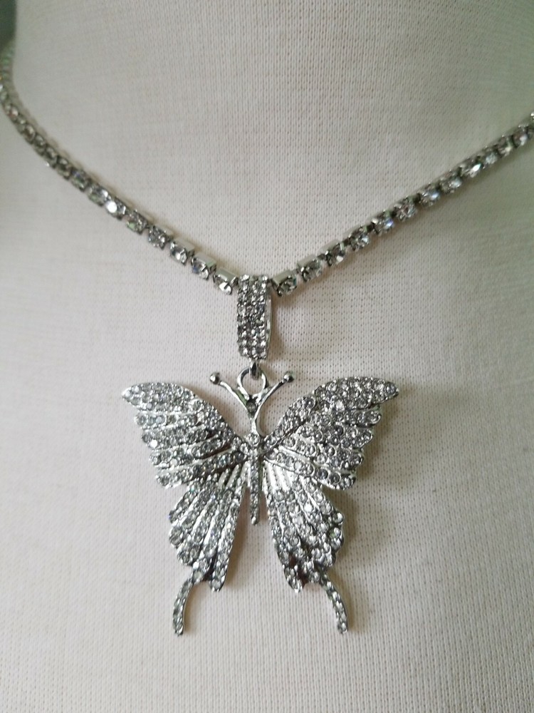 Brand new without tags is our beautiful silver ice bling Butterfly Tennis Necklace with Crystal Tennis Chain Condition is New without tags. Measures 16.5 inches with 1 inch extender chain. Beautiful crystals adorn this 2 inch butterfly and the tennis chain. Lobster clasp closure Can be dressed up or dressed down, looks great with any style. Ask all questions prior to order. Shipping with usps first class mail with tracking.