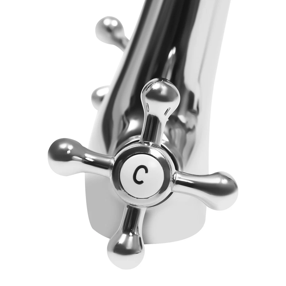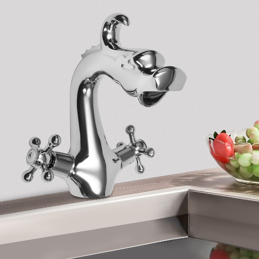 Dragon Shape Silver Two-Handle One Hole Bathroom Sink Mixer Tap Faucet Deck Mount Lavatory Description A faucet is an indispensable presence in our lives, and a good faucet will bring our living life great convenience. Our unique dragon-shaped faucet uses brass, ceramic valve core, and stainless steel materials and adopts various processes to ensure long service life. You can easily control the water flow and temperature with 2 handles. It will be a beautiful and practical assistant in your bathroom. Key Features Selected Material: This product adopts premium brass, ceramic valve core, and stainless steel hoses, making it resistant to corrosion, rust, and high&low temperature, and not easy to deform. Dual Hot and Cold Water: You can control the water temperature (32-176℉) through th Silver Dragon Shape Two-Handle One Hole Bathroom Sink Mixer Tap Faucet Deck Dragon Shape Silver Two-Handle One Hole Bathroom Sink Mixer Tap Faucet Deck Mount Lavatory Description A faucet is an indispensable presence in our lives, and a good faucet will bring our living life great convenience. Our unique dragon-shaped faucet uses brass, ceramic valve core, and stainless steel materials and adopts various processes to ensure long service life. You can easily control the water flow and temperature with 2 handles. It will be a beautiful and practical assistant in your bathroom. Key Features Selected Material: This product adopts premium brass, ceramic valve core, and stainless steel hoses, making it resistant to corrosion, rust, and high&low temperature, and not easy to deform. Dual Hot and Cold Water: You can control the water temperature (32-176℉) through the left and right handles, and even the old and children can use it easily and safely. Suitable Height&Distance: The 4.3" spout height does not splash water around, thus making the sink neater. And the distance from the spout to the pole is 5.1", which ensures a more spacious space for using water and makes washing/receiving water more convenient. Classic and Meaningful: The vivid dragon head spout, two round cross-shaped handles, arc design, and low-key silver color make this faucet classic and unique. And the dragon is a symbol of power, nobility, honor, luck, and success in traditional Chinese culture. So this product is a meaningful decoration and adds some antique flavor to your home. Anti-drip: The high-quality ceramic valve core and waterproof O-ring make it easier to adjust the water flow and can better prevent water leakage, thus saving water. Easy to Clean: The smooth surface and simple structure make it easy to clean, you just need to wipe the dirt from it with a wet cloth. Easy to Install: The one-piece construction, hot&cold water hoses, practical accessories, and a detailed manual provide much convenience for your installation. Ideal Gift: With a unique appearance and great performance, this item can be used as a housewarming gift for parents, lovers, and friends so that they can enjoy a more convenient life. Good Customer Service: Communication is the best way to solve problems. If you encounter any problem after purchase, please contact us in time. We will do our best to solve the problem for you. Details ABS Frother: The lattice ABS frother with filter device provides a soft jet of water and filters impurities, so you can enjoy a gentle and clean SPA-like washing experience without fear of splashing your sleeves with running water. Standard Threaded Connector: The NPT3/8'' threaded connector is compatible with most water pipes for easy replacement and makes the pipe not easy to fall off. Round Corner: Compared with traditional square corners, an arc design can better care for your skin. How to Install 1. Before installing the faucet, flush the pipe to remove any dirt that has accumulated in the pipe. 2. Place the O-ring into the valve body. 3. Tighten the screw to the valve body through the hole and secure the nut with a wrench(not included). 4. Connect the hoses. Application This product is ideal for private and commercial use and is suitable for homes, restaurants, shopping centers, schools, companies, hotels, kitchens, clinics, hospitals, KTVs, subway stations, bathrooms, and other places. Specification Color: Silver Shape: Dragon Style: Antique Assembly Required: Yes Material: Brass, Stainless Steel Processes: Antique Technology Mount Type: Deck Mount, Single-hole Room Type: Bar, Kitchen, Bathroom Number of Items: 1 Number of Hoses: 2 Number of Handles: 2 Handle Type: Cross Valve Core Type: Ceramic Water Pressure: 0.05-0.6MPA Temperature Range: 0-80°C/32-176℉ Thread: NPT3/8'' Hose Length: 50cm/19.68inch Spout Height: 11cm/4.3inch Total Height: 19.5cm/7.67inch Interface Diameter: 4.5cm/1.77inch The Distance from the Spout to the Pole: 13cm/5.1inch Package Size: 28*18*10cm/11.02*7.08*3.93inch Gross Weight: 1.5kg/3.3 lbs Net Weight: 1.32kg/2.9 lbs Package Included 1* Dragon-shaped Faucet 2* Hoses 1* English Manual All Accessories for Installation Notes 1.The faucet needs to undergo high-pressure water testing before leaving the factory, so there is a small amount of water inside the product, and the inner wall of the product may have rough copper particles, which are normal phenomena. Please rest assured to use it. 2.Please note that the faucet can not be rotated. 3.Please connect the water pipe and test the water outlet before installation. 4.Please be sure to connect the interfaces to the pipes correctly and firmly and make sure that the pipes are clean. 5.Please clean it with water, a damp soft cloth, and a mild non-abrasive dish detergent or soap. Please do not use scouring powder, steel wool, or a detergent that is calcium-dissolving, sour, or contains alcohol, or an abrasive. 6.Please read the operating manual completely before use. And pay particular attention to the safety instructions included. 7.Please allow the slight color difference caused by the shooting light and the 1-3 cm error due to manual measurement, and make sur