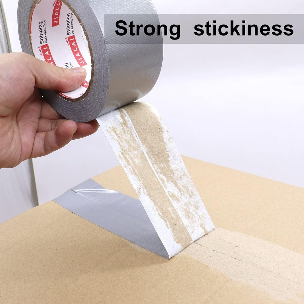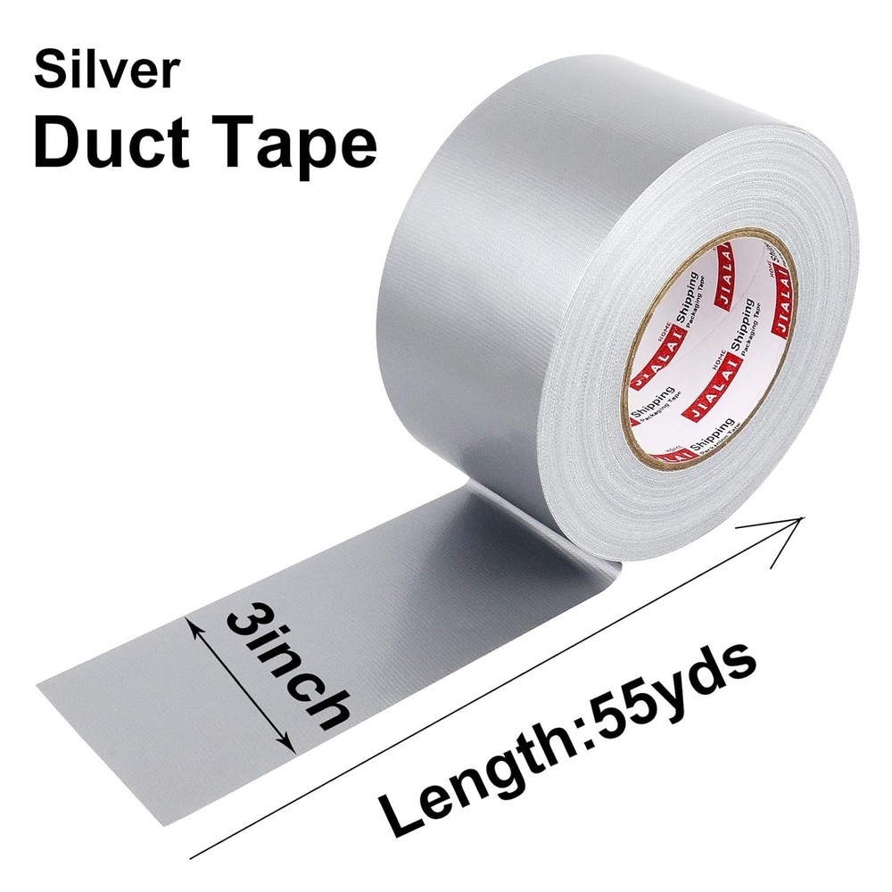 Wide Duct Tape 3 inch, Industrial Grade Silver (Gray) Tape 3 inches x 55 Yards (164 ft), 9 Mil Heavy-Duty, Waterproof, UV Resistant for Crafts & Home Improvement Brand JIALAI HOME Color Silver Material Polyethylene Number of Items 1 Recommended Uses For Product Indoor,Arts And Craft,Outdoor About this item Heavy Duty Adhesive - Our multi-use wide silver duct tapes stick to a wide variety of surfaces and irregular shaped objects. With good stretch to fit tightly around bends, corners, and curves. Our tape’s strong adhesive strength is just what you need to patch, bundle and repair anything fast. It's perfect for temporary repairs and everyday fix-it needs Waterproof and No Residue - JIALAI HOME heavy-duty duct tape is specially designed to be residue-free. Protect your surfaces and say goodbye to painful cleanup. Use as packing tape to mail heavy cargo boxes or bundle items like wood planks for storage Strength & Flexibility - Our duct tape is engineered to strike the ideal balance between strength and flexibility. Just right for repairs around nooks, crannies and crevices. And one more thing, our tape is easy to tear by hand--no scissors required. Quickly patch, bundle, reinforce, insulation, tape cords, temporary repair, and more. Good for indoor or outdoor use, especially sticking to rough, uneven, unforgiving surfaces Easy to Tear - Duct tape can be easily peeled and taped, no need to use other tools to help and it can be undone and restuck. Heavy-duty duct tape is very strong adhesive, but you can tear off straight without stretching it out of shape or leaving a residue Multiple Use - Use it for everything and everywhere! Good adhesion bonds to almost any surface, for indoor and outdoor applications. For home repairs, car repairs, arts & crafts, moving, and packing. Like you can use for decoration (painted your driveway, car or truck body, handmade artwork,etc.); for repair (repair your leather sofa, tarp, table, chair and other furniture); for fixing various objects, covering product surfaces Silver Duct Tape, Wide Roll, 3 inches x 55 Yards (164 ft) Wide Roll Silver Duct Tape - 55 Yards x 3 Inch . Perfect for packaging, sealing, bundling, binding, and general maintenance. Waterproof, Residue-Free - All-weather Silver duct tape is ideal for sealing, waterproofing, winterizing your home, hanging plastic sheeting, and other emergency repairs. our extra strength duct tapes feature an all-natural adhesive, so it leaves No Residue behind. Easy To Tear - Heavy-duty duct tape is very strong adhesive, but you can tear off straight without stretching it out of shape or leaving a residue. Premium Quality Heavy Duty Tape - No matter the task, our duct tape rolls provide an Ultra-Strong Grip. You won't need scissors with its easy Tear by Hand material. Use as packing tape to mail heavy cargo boxes or bundle items like wood planks for storage. Multiple Use - Our duct tape is good adhesion bonds to almost any surface, such as wood, carpet, leather, boxes, plastic and other indoor and outdoor applications. Heavy Duty Silver Duct Tape 3 Inches Heavy Duty Adhesive - Don’t settle for cheap synthetic glues. Our duct tape is made with a super-strong, natural rubber adhesive. Waterproof and All-Weather - Our Silver duct tape can take a beating. It’s got a waterproof backing that can handle just about any weather you throw at it--hot or cold, sunshine, rain or even snow. No Residue - Most duct tapes leave behind a sticky mess once removed. Not us! JIALAI HOME heavy duty line is specially designed to be residue free. Protect your surfaces and say goodbye to painful clean up. Strength & Flexibility - Our's duct tape is engineered to strike the ideal balance between strength and flexibility. Just right for repairs around nooks, crannies and crevices. And one more thing, our tape is easy to tear by hand--no scissors required. Function of Silver Duct Tape, Wide Roll, 3 inches x 55 Yards (164 ft), Heavy-Duty, Waterproof, 1 Roll Pack The duct tape is based on the thermal compounding of polyethylene and gauze fibers. Coated with high-viscosity synthetic glue, it has strong peeling force, tensile strength, grease resistance, aging resistance, temperature resistance, water resistance and corrosion resistance. It is a high-adhesion tape with relatively large adhesion. Cloth tape is mainly used for carton sealing, carpet seaming, heavy-duty strapping, waterproof packaging, etc. It is also frequently used in the electromechanical industry of the automobile industry and paper industry, and is used in places with good waterproof measures such as automobile cabs, chassis, and cabinets. Easy to die-cut. Easy Tear By Hand Forget about scissors! Our duct tapes are easy to tear by hand both vertically and horizontally. Take it with you while you travel or during camping. With 3 inch wide rolls of 55 yards silver in one case, every traveler and camper can have one in their emergency kits. Easy to use anywhere! All-Weather Waterproof Backing Trust in your duct tape—indoors or out, rain or shine. Your duct tape bulk rolls don’t ruin in water due to their waterproof backing. Our water-proof heavy duty duct tape is built to hold fast and built to last. JIALAI HOME Industrial strength silver duct tape rolls offer a tightly woven core for solid gripping power. Strong Adhesive For Basic Repairs Our versatile multi-use grey duct tapes stick to a wide variety of surfaces and irregular shaped objects. With good stretch to fit tightly around bends, corners, and curves. Our tape’s strong adhesive strength is just what you need to patch, bundle and repair anything fast. It's perfect for temporary repairs and everyday fix-it needs. Great Value Super Strong Duct Tape, Silver, 3 Inches x 55 Yards Duct Tape GREAT VALUE - Excellent value for money! Premium quality, this 3 inch wide rolls of 55 yards (164ft) of heavy duty silver duct tape that you can use for anything from home projects to serious industrial repairs. Store one in yo