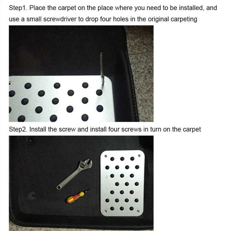 Product Description Universal Aluminum Anti-skid Pedal Pad Foot Heel Scuff Plate Silver Car Floor Mat Non-slip Carpet Patch Interior Accessories 28*16cm Add our listing to Watchlist Or Add to Cart , you will get more discount Specification 1. adaptable model: All Cars 2.Non-slip 3.Aluminium Alloy car pedal,surface brushed treatment & Anodic oxidation process eterior wear-resisting & high grade polypropylene 4.Easy to install 5.Color: Silver 6.Size:28*16*0.2cm Material 1. Aluminum alloy:excellent powerful look, to improve pedal grip, to provide much better anti-slip 2. Wearing proof preservative: to increase foot pedal surface coefficient of friction to enhance driving safety 3. High-quality rubber: with a strong sense of buffering capacity, to make driving easier and let you have good feeling eBay Cross Border Trade powered by ChannelEffect