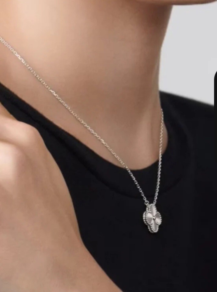 Customized: No Country/Region of Manufacture: China Antique: No Country of Origin: China Handmade: No Item Length: 18inch Personalize: No Wholesale: No Features: Adjustable Vintage: No Number of Gemstones: 0 Sizable: Yes Signed: No Personalization Instructions: na Metal: Unknown California Prop 65 Warning: na Era: Undated Style: Chain Main Stone Color: na Main Stone Shape: Clover Theme: Monogram Base Metal: Stainless Steel Color: Silver Metal Purity: na Shape: Clover Occasion: Anniversary, Engagement, Graduation MPN: na Closure: Lobster Charm Type: Floating Chain Type: Cuban Seller Warranty: No Brand: Ashley Marie Boutique and Spa LLC Type: Necklace