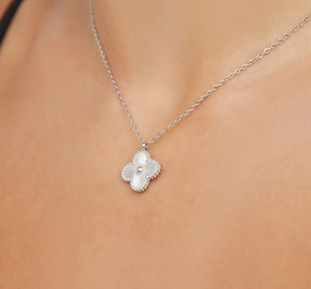 Silver & Gold Double-Sided 4 Leaf Clover Chain Necklace Luxury Design