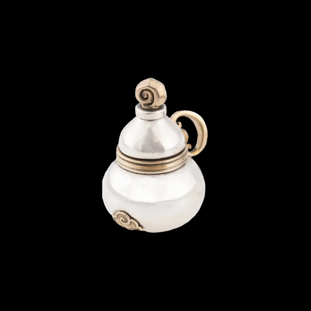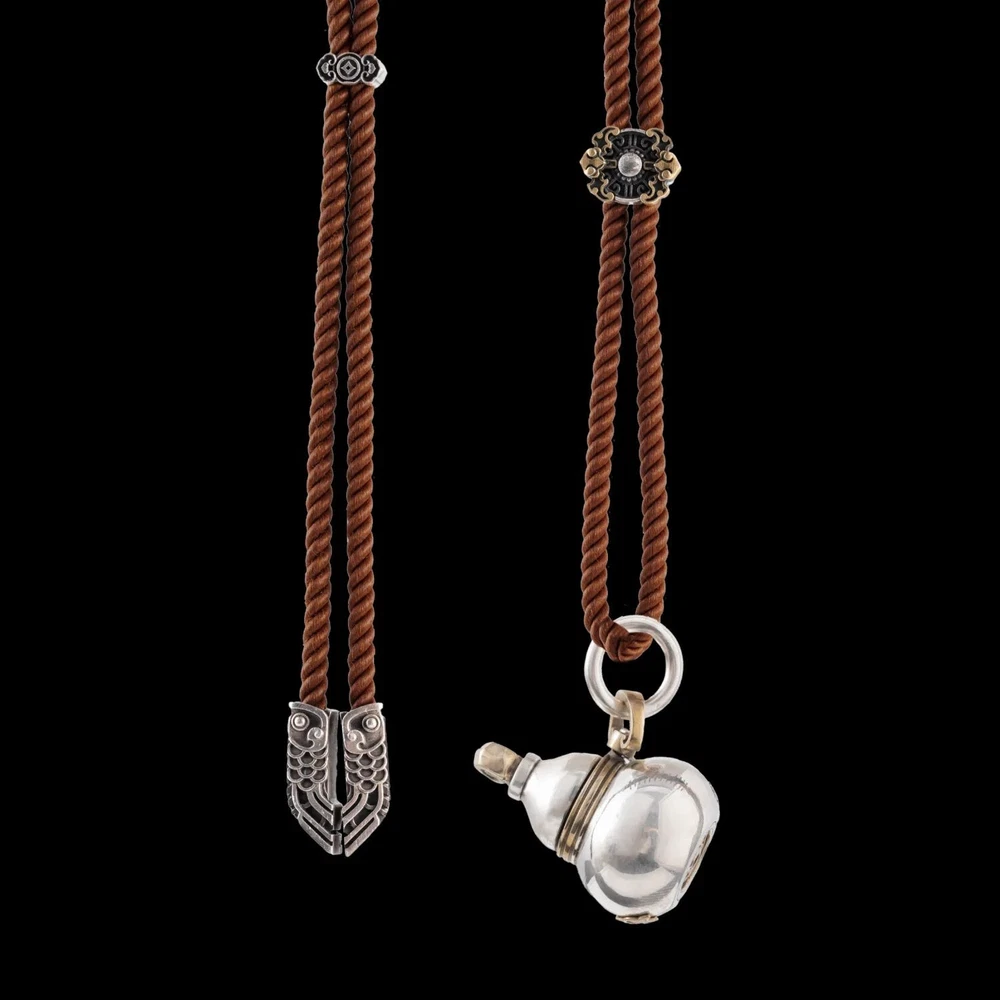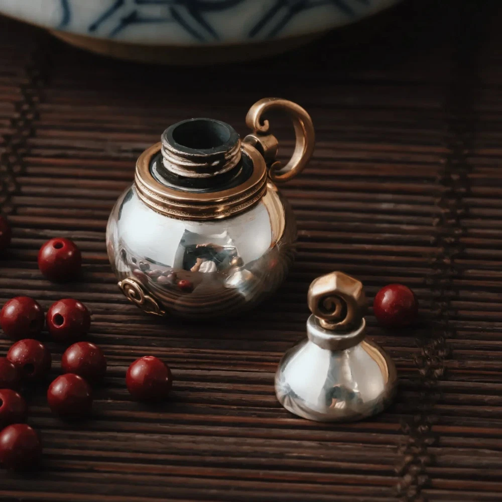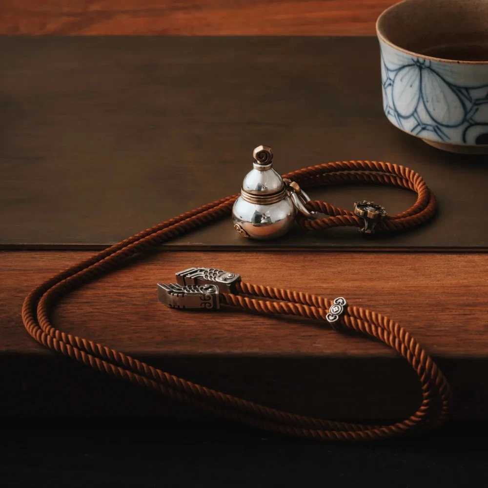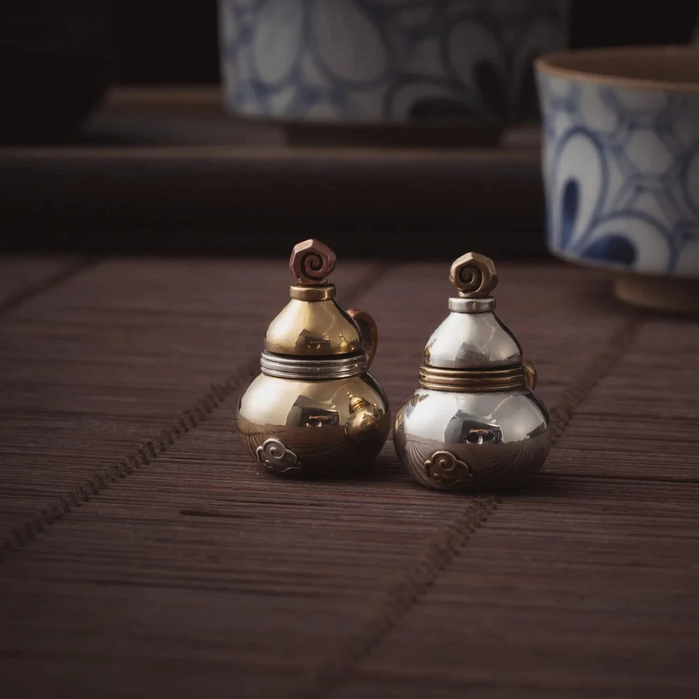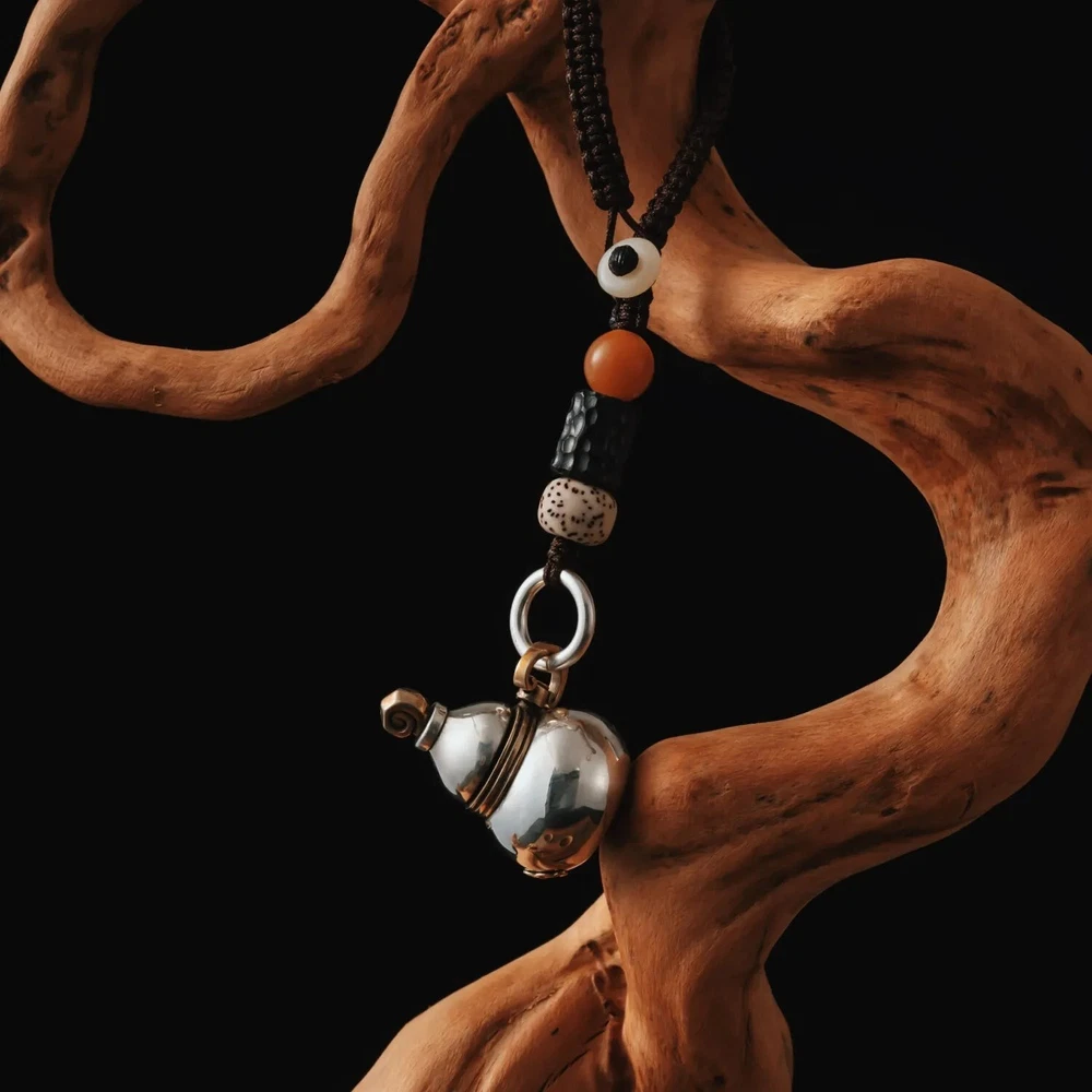 Gourd Pendant: The design is inspired by the gourd, which symbolizes hope and radiates blessings and prosperity. In oriental cultures, gourds are revered for their association with longevity, good luck, and spiritual growth. Exquisite Craftsmanship: Carefully crafted with attention to detail, the gourd pendant features a swivel handle and waist with a rubber ring to hold it in place, ensuring functionality and elegance. Delicate 925 silver auspicious clouds and ruyi motifs embellish its base, reflecting the desire for a beautiful and peaceful life. Materials & Size: Made of brass, copper, and silver to enhance the details and beauty of the pendant. Size: 1.1 inches (L) x 0.75 inches (W). Weight: 10g. This is not just a piece of jewelry; it is also a talisman of positivity and potential, inspiring the wearer towards a brighter future. Multi-Purpose Accessory: This gourd pendant easily converts to a necklace with a chain (not included) and is the perfect addition to any necklace, bracelet, or other DIY project. Its lightweight and compact design makes it ideal for everyday wear. Hole Size: 0.26” / 5.5mm. Amulet Gift: Its delicate design and deep symbolism make it the perfect gift for yourself or a loved one. Whether for a friend embarking on a new journey or a family member seeking encouragement, this gourd pendant is a meaningful symbol of hope and a promise of a better life ahead.